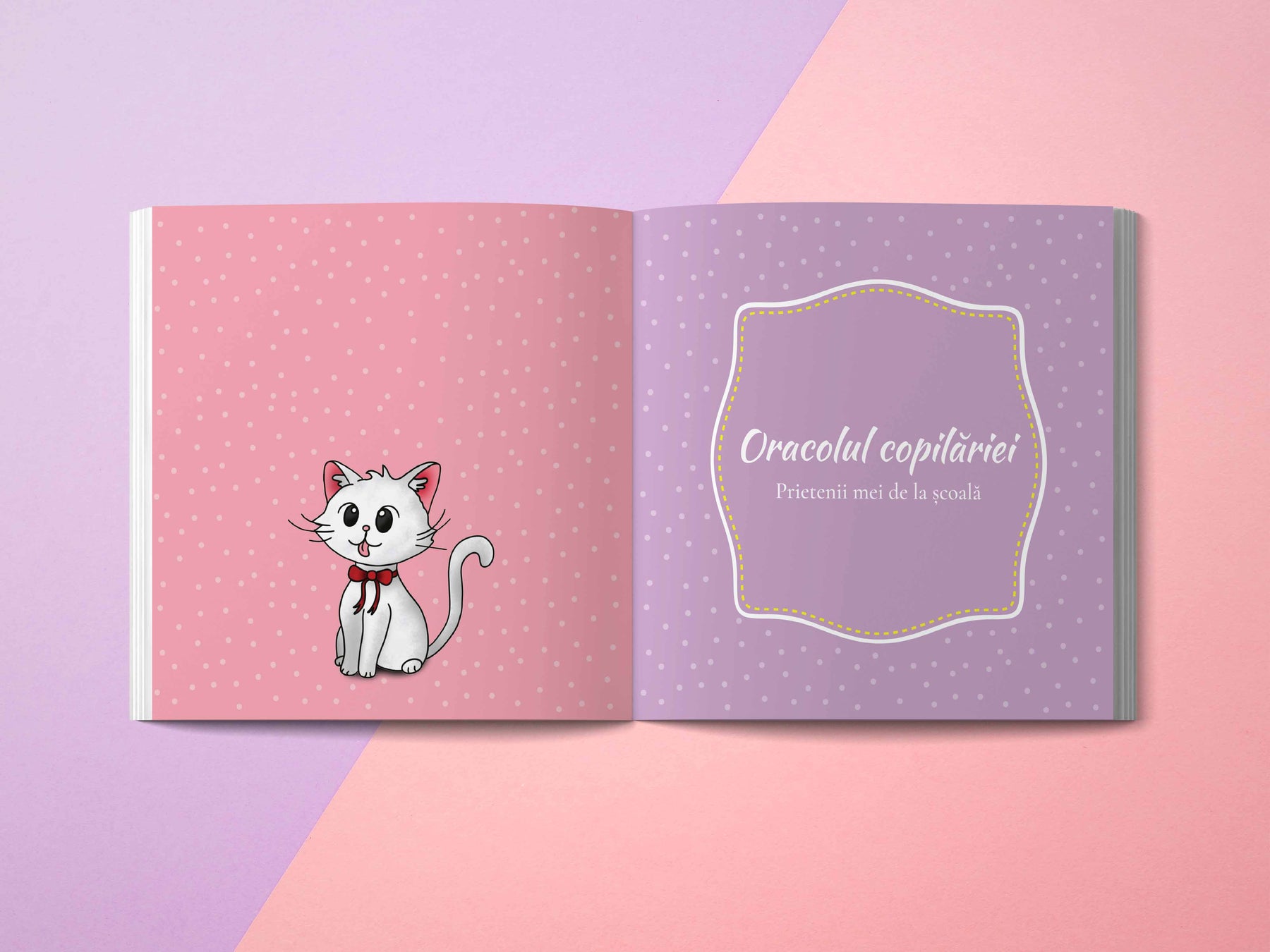 Oracolul are dimensiunea 21 cm x 21 cm și oferă spațiu de completat pentru 30 de prieteni ai celui mic (bonus: pagini pentru doi învățători), având in totalitate 84 de pagini.