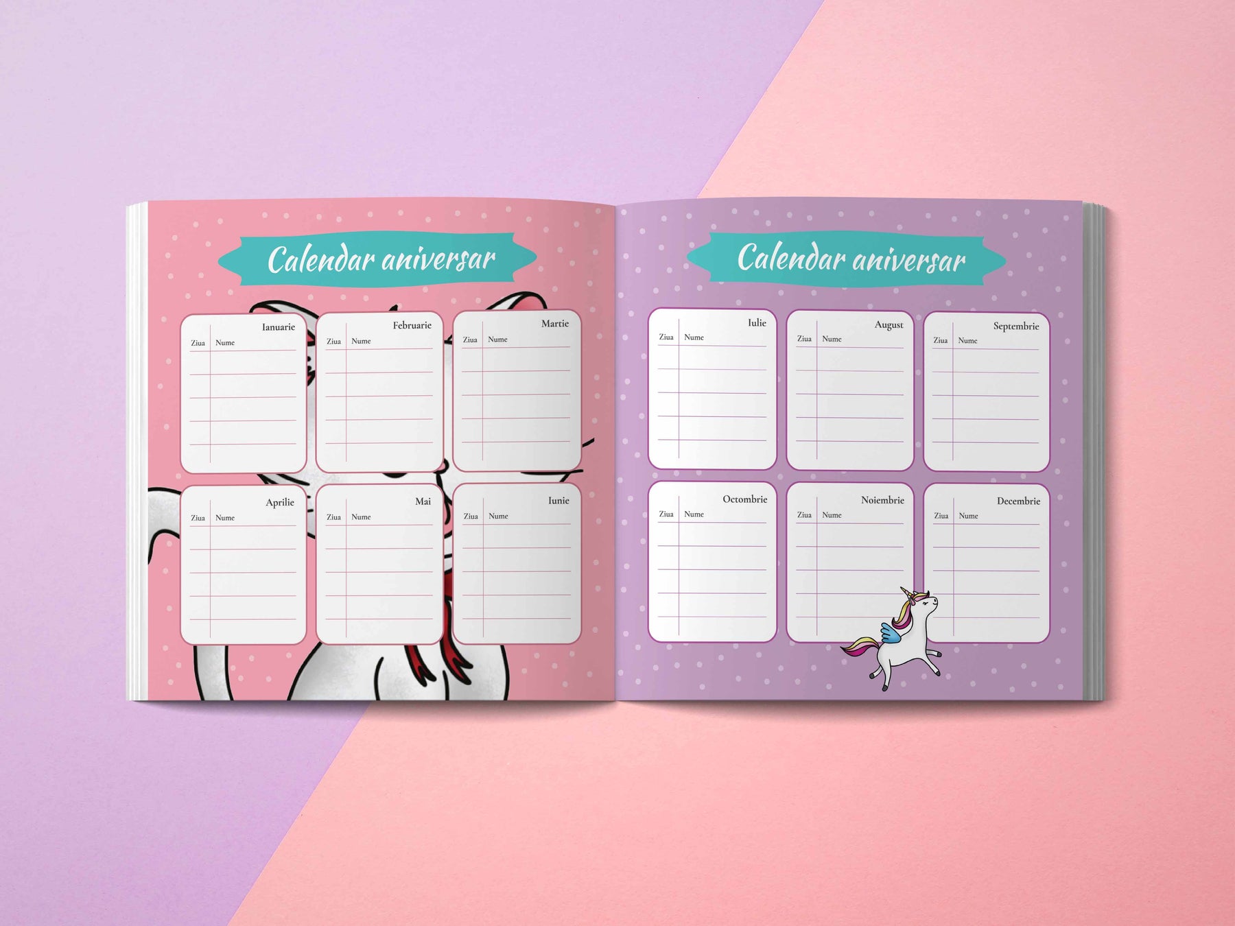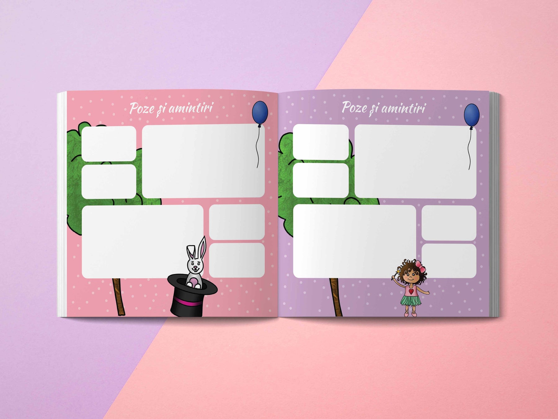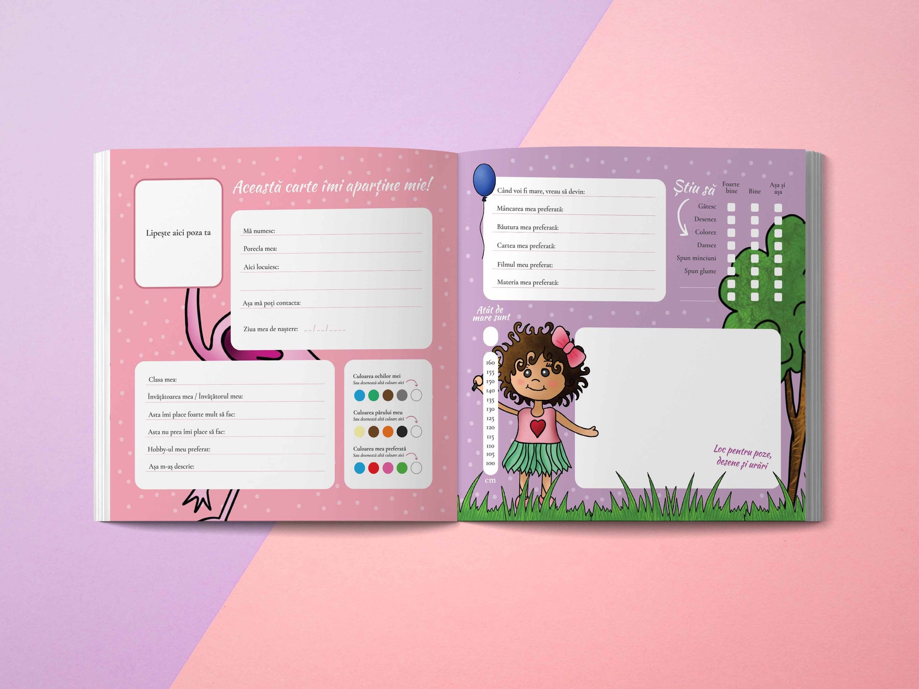Ajută-l să răspundă la întrebări despre materia preferată, înălțime sau hobby-uri și să exploreze, pagină cu pagină, toate felurile în care poate adăposti detalii, desene, poze cu colegii și alte comori.