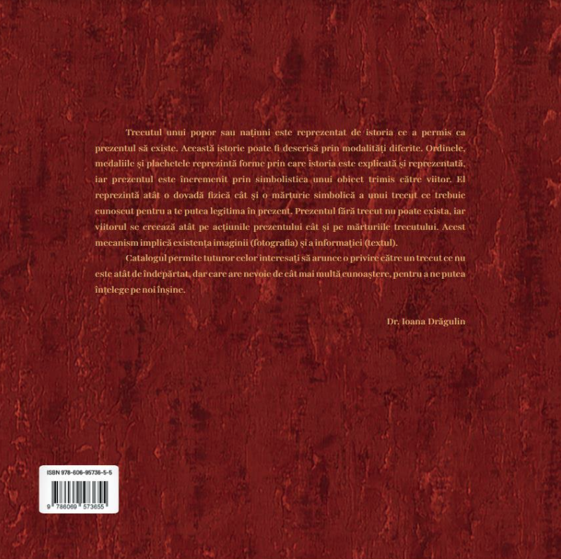 El reprezintă atât o dovadă fizică cât și o mărturie simbolică a unui trecut ce trebuie cunoscut pentru a te putea legitima în prezent. Prezentul fără trecut nu poate exista, iar viitorul se creează atât pe acțiunile prezentului cât și pe mărturiile trecutului. Acest mecanism implică existența imaginii (fotografia) și a informației (textul). /// Acest catalog permite tuturor celor interesați să arunce privirea către un trecut ce nu este atât de îndepărtat, dar care are nevoie de cât mai multă cunoaștere, pentru a ne putea înțelege pe noi înșine. Prin el se valorifică o parte a colecției de Ordine, medalii și plachete aflate în patrimoniul Muzeului Național Cotroceni, respectiv cele emise în România.