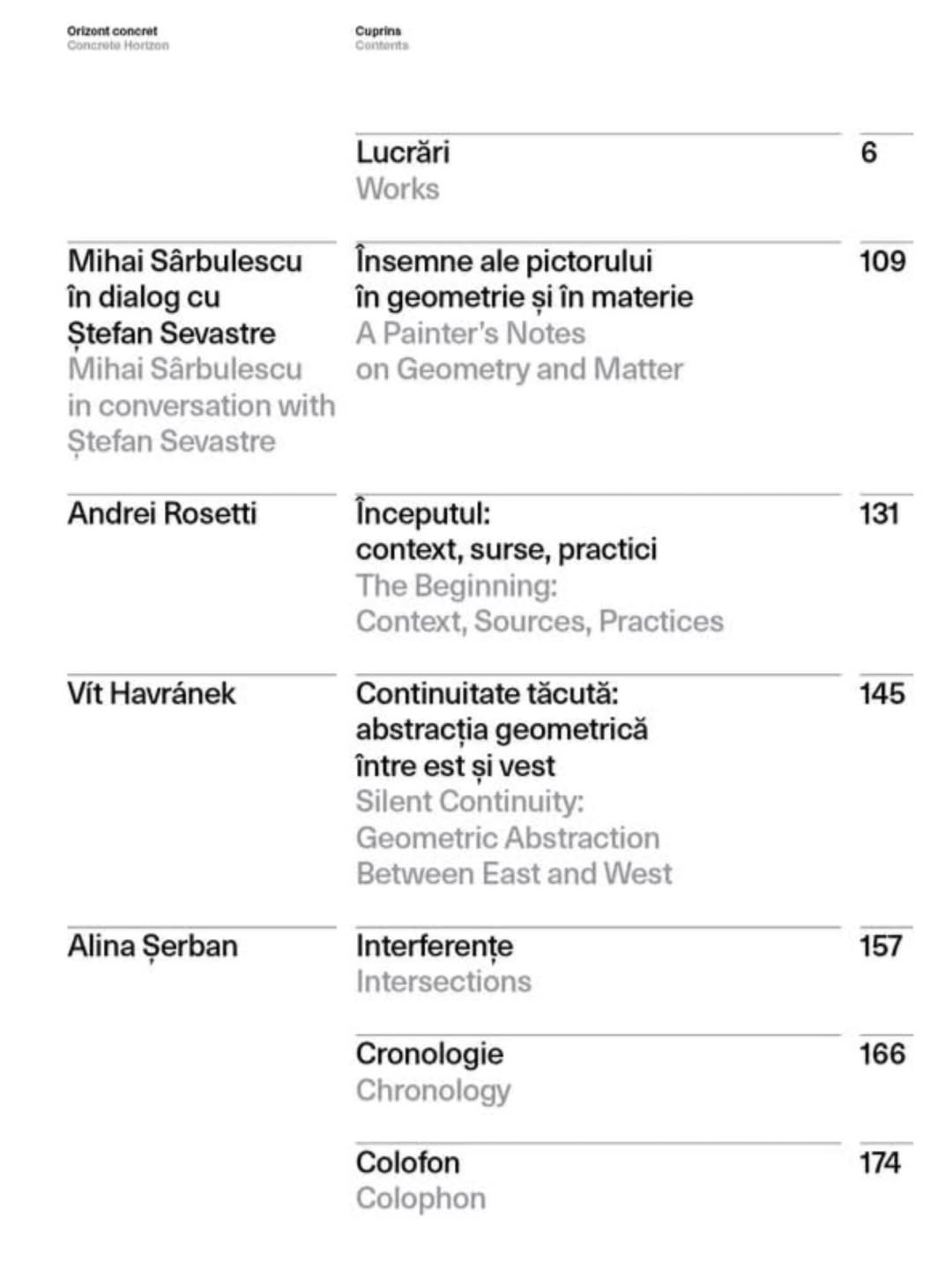 The texts of the invited authors—Andrei Rosetti, Vít Havránek and Mihai Sârbulescu—as well as the series of works reproduced with the support of the Sevastre archive and several museum collections in Romania, showcase his artistic path, sometimes carried out in difficult historical conditions, and highlight the affinities of language and conceptual structure with geometric abstraction.