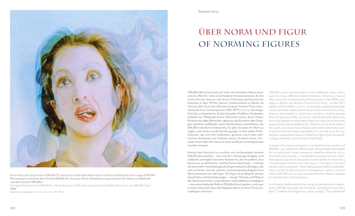 This catalog, published in tandem with an exhibition in Vienna, traverses the six decades of Orlan's oeuvre, revisiting her early performances in particular, while also representing her most recent creations. Notably, the artist's robot ORLAN-OÏDE (2018) is presented in the book via "ORLAN avatars," which can be animated through an augmented reality app.