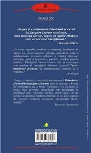 Romanul nu este nici o continuare a cartilor anterioare ale autorului (a carui bibliografie numara inca sase romane), dar nici complet straina de ele. Drama unei copilarii consumate sub norii apasatori ai stalinismului, pacaleala mai multor „dezgheturi” succesive, confuzia de valori ca si inutilitatea unor sacrificii, toate aceste teme reapar si aici inscrise intr-un filigran extrem de delicat, dar si seducator. Delicat, pentru ca Makine evita tonurile dure chiar daca subiectul il incita la cruzime, preferind aluzia, aparenta, aburul multicolor al metaforei. Seducator, pentru ca scriitorul rus stramutat la Paris isi imbraca naratiunea sincopata intr-o urmarire de gen politist, care nu are cum sa nu-l cucereasca pe cititor.