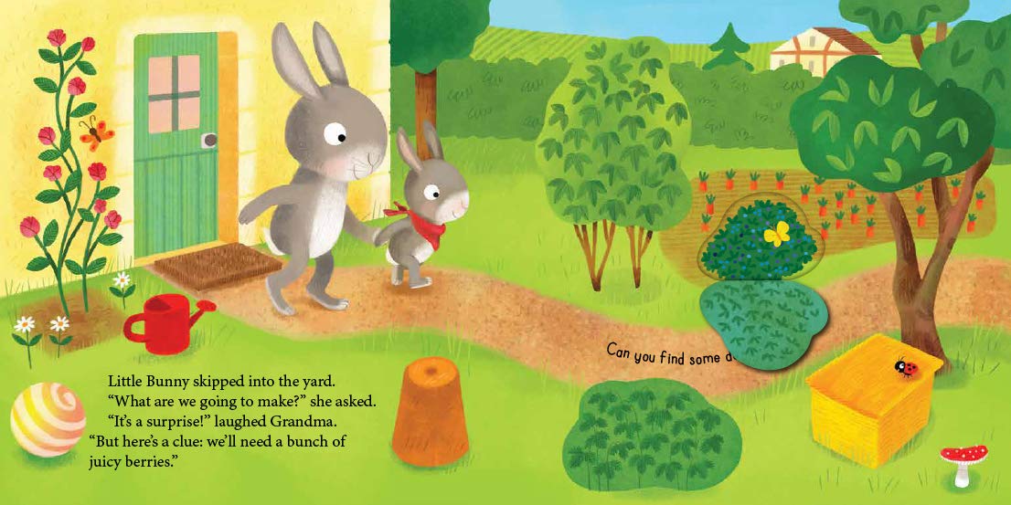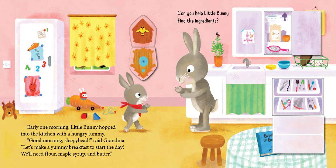 Join Grandma Bunny and Little Bunny as they make pancakes together. Follow along as Little Bunny finds the ingredients in Grandma's kitchen and then goes outside to gather eggs and pick berries. Lift-the-flaps to find some food along the way! Then discover a simple recipe for Berry Pancakes at the back of the book!