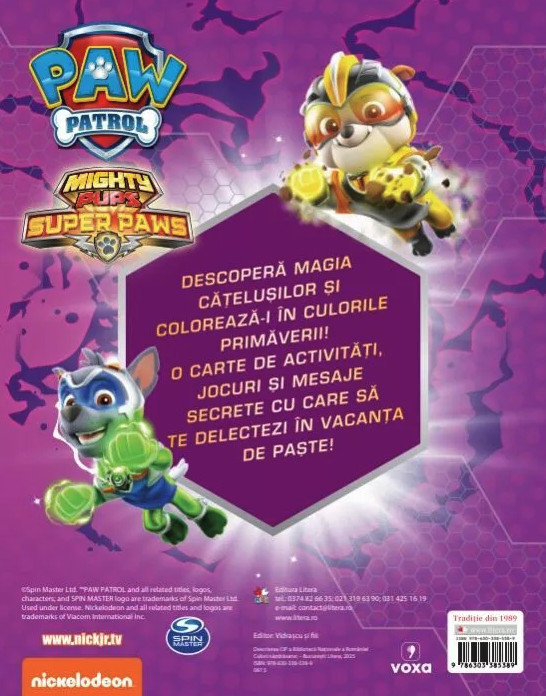 Descoperă magia Cățelușilor și colorează-i în culorile primăverii! O carte de activități, jocuri și mesaje secrete cu care să te delectezi în vacanța de paște!