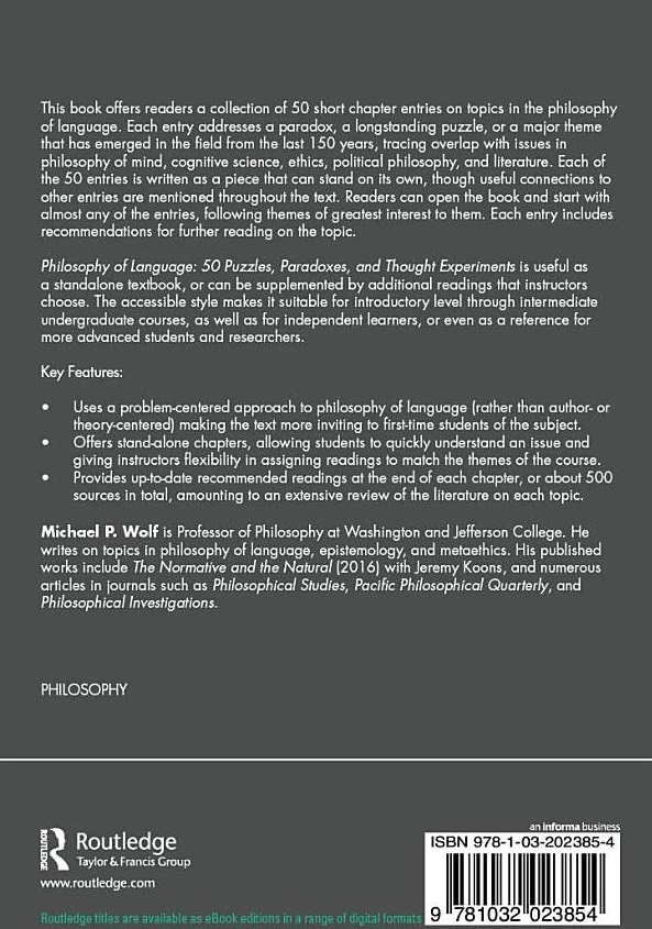 Philosophy of Language: 50 Puzzles, Paradoxes, and Thought Experiments is useful as a standalone textbook, or can be supplemented by additional readings that instructors choose. The accessible style makes it suitable for introductory level through intermediate undergraduate courses, as well as for independent learners, or even as a reference for more advanced students and researchers.
