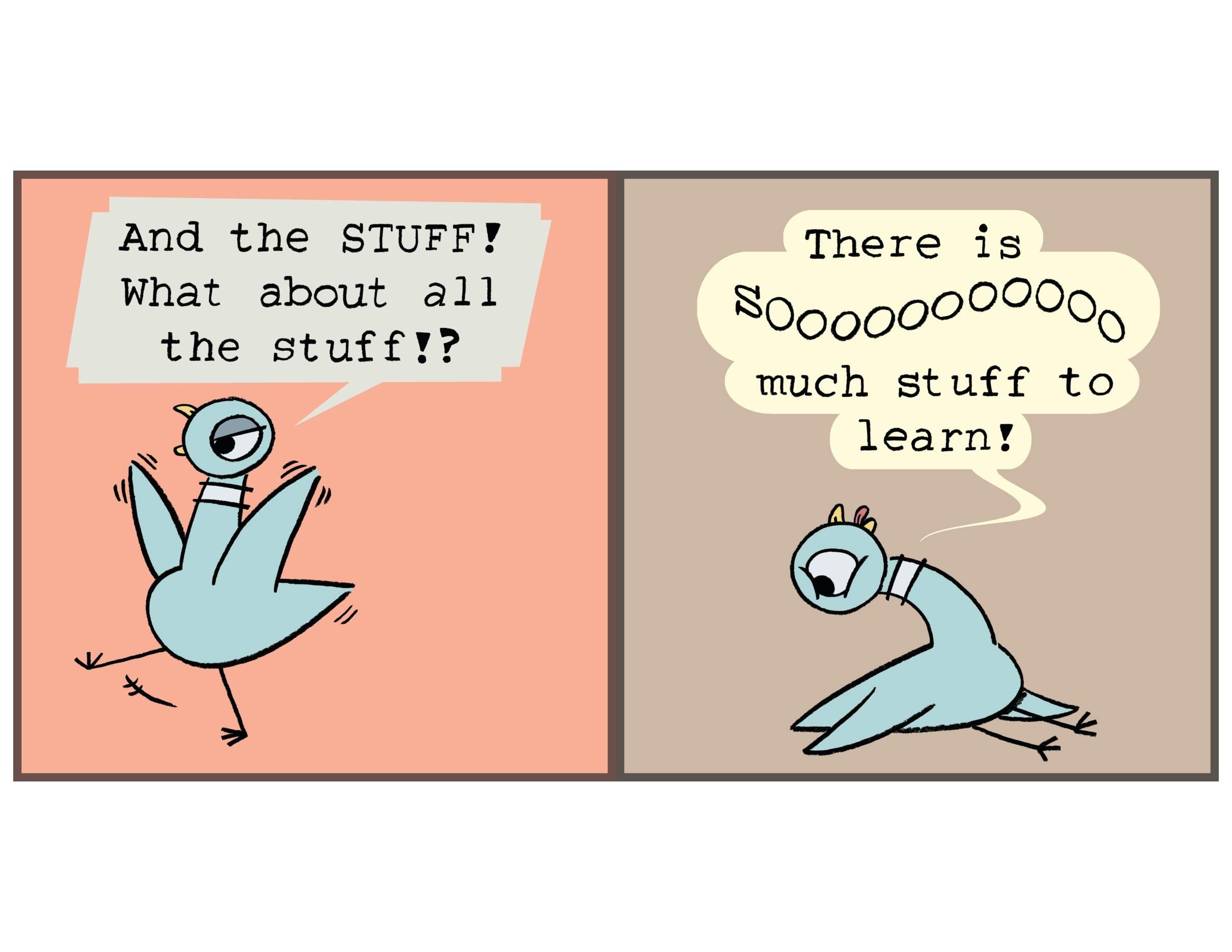 Why does the Pigeon have to go to school? He already knows everything! Well ... almost everything. And what if he doesn't like it? What if the teacher doesn't like him? I mean, what if he learns TOO MUCH!?!