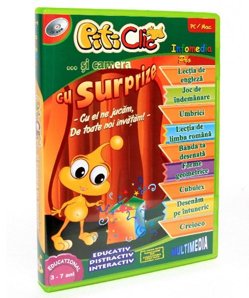 Lecția interactivă "PitiClic ... şi camera cu surprize" are la bază noţiuni de matematică, logică, limbă şi limbaj, orientare spaţială, jocuri de îndemânare, cunoştinţe generale şi dezvoltă atenţia, imaginaţia și spiritul de observaţie și pe cel artistic.