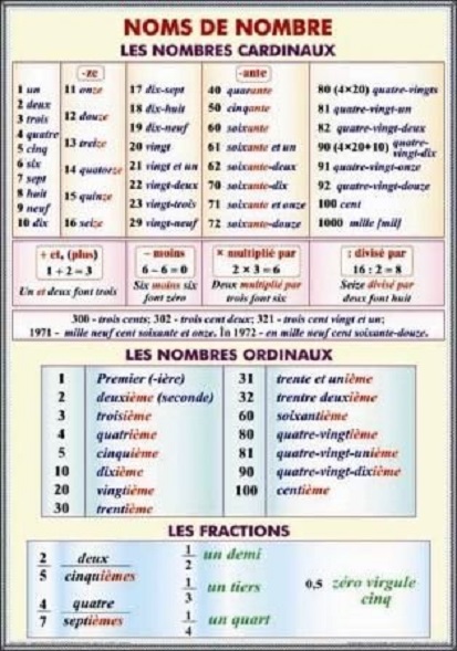 Plansa - Noms de nombre: Les nombre cardinaux, le nombres ordinaux, le fractions / Adjectiv nombre G