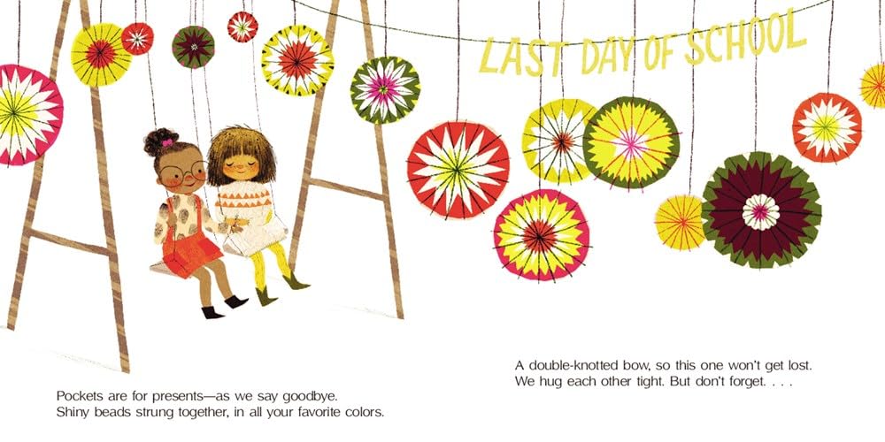 A sweet friendship begins between two young girls on the first day of school. Throughout the year, they fill their pockets with everything from cookies to wiggly worms, to wonders, memories, and more as their friendship blooms.