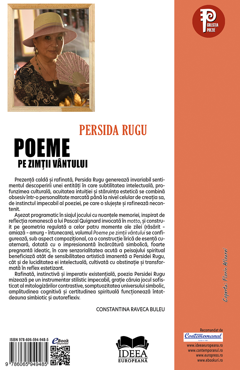Rafinată, instinctivă și imperativ existențială, poezia Persidei Rugu mizează pe un instrumentar stilistic impecabil, grație căruia jocul sofisticat al mitologizărilor contrastive, somptuozitatea universului simbolic, amplitudinea cognitivă și certitudinea spirituală funcționează întotdeauna simbiotic și autoreflexiv. / Constantina Raveca Buleu