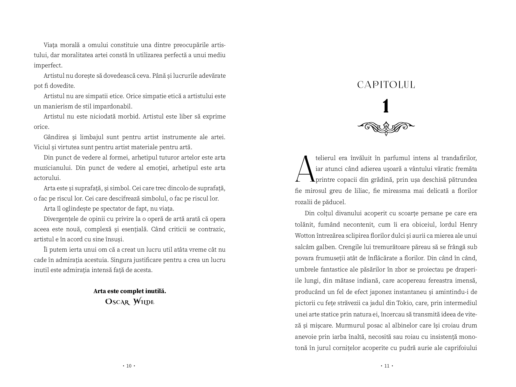 Prin destinul enigmatic al tânărului Dorian Gray – care își vinde sufletul pentru a-și păstra tinerețea – autorul explorează granițele dintre frumusețe, moralitate și decădere, într-un stil inconfundabil, plin de rafinament, ironie și profunzime filozofică.