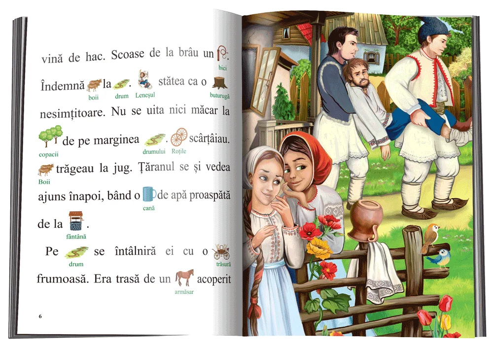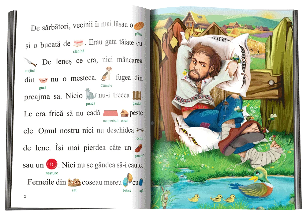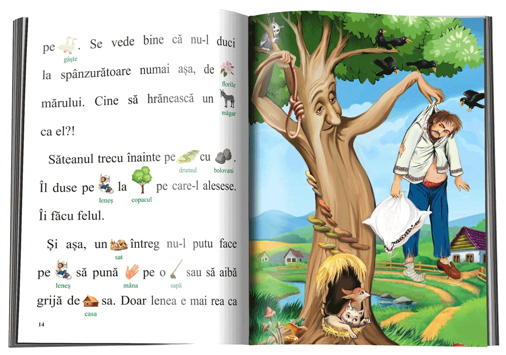 Cartea include ilustrații deasupra cuvintelor, pentru a ușura asocierea cuvânt-sens. Ilustrațile simpatice și fontul de dimensiuni mari vor face ca lectura să fie mai ușor de parcurs, iar cartea mai atrăgătoare.