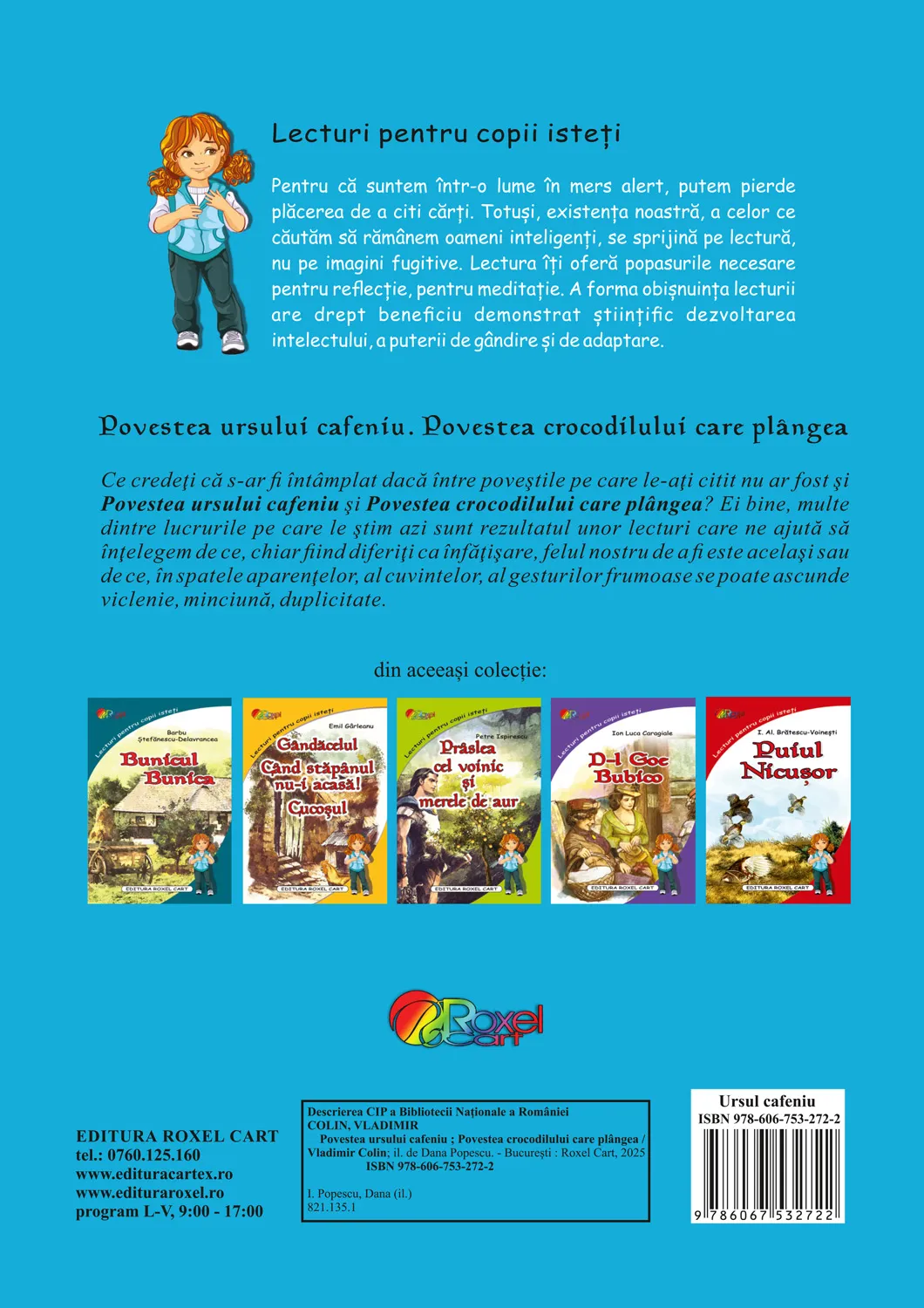 Cartea Povestea ursului cafeniu. Povestea crocodilului care plangea este adaptata pentru copiii din clasele mici, care abia au invatat sa citeasca. Ilustratiile colorate stimuleaza creativitatea copiilor, care pot vizualiza mai usor firul povestii.