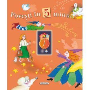 Cartea aceasta este un leagan fermecat, ce ne poarta intr-o lume plina de mister, emotie, fantezie si surprize. In ea veti gasi povestile dintotdeauna, cu inceputuri si finaluri distractive, pe care sa le citesti in doar⌠cinci minute. Daca vrei sa te distrezi si sa ii distrezi si pe ceilalti, fii naratorul povestii. Este usor! Nu trebuie decat sa folosesti intonatia vocii si gesturile fiecarui personaj si vei reusi sa captezi atentia ascultatorilor. Distractie placuta! Din cuprins: Scufita Rosie, Printesa si bobul de mazare, ratusca cea urata, Riquet Motanul, Fluierarul din Hamelin, Cenusareasa si Soldatul de plumb . Aceasta colectie a fost creata pentru ca tu sa poti citi sau povesti usor textele copiilor, nepotilor, fratilor, parintilor sau bunicilor⌠Fiecare dintre povesti va va ajuta sa fiti mai buni si mai intelepti in doar cateva minute!