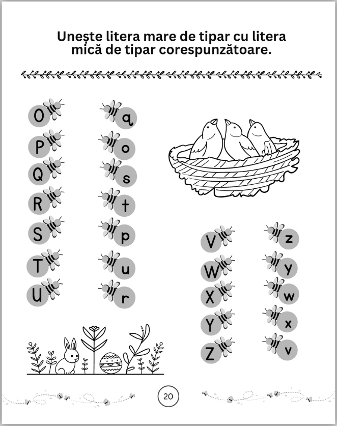 Carte de activități cu elemente specifice anotimpului Primăvara, pentru copii de 5 ani+ ajută la învățarea prin joc, relaxat. Conține exerciții distractive: labirinturi, jocuri cu cifre și litere, completarea șirurilor logice, unirea punctelor, desen, adunări și scăderi amuzante. Activitățile din această carte ajută la dezvoltatea atenției și concentrării.