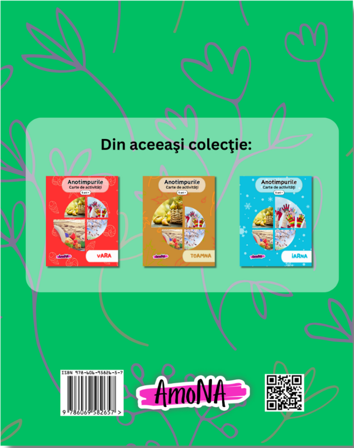 Colecția "Anotimpurile" conține 4 cărți: IARNA, PRIMĂVARA, VARA, și TOAMNA. Descoperă-le pe toate și învață cu placere!
