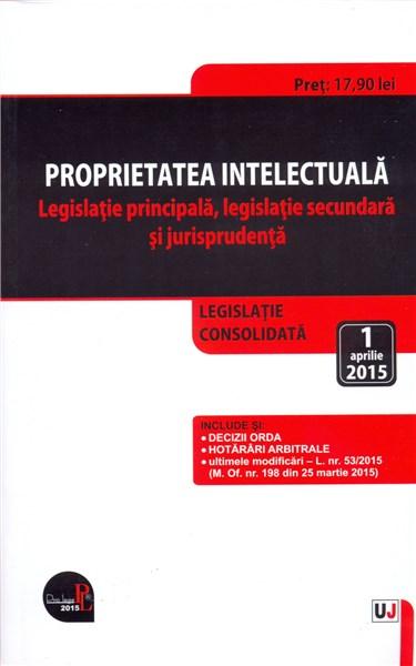 Lucrarea Proprietatea intelectuala. Legislatie principala, legislatie secundara si jurisprudenta. Legislatie consolidata: 1 aprilie 2015 cuprinde 20 de acte normative (dar si numeroase extrase relevante din legi incidente) care reglementeza domeniul proprietatii intelectuale, asigurand astfel o buna cunoastere a acestuia:
