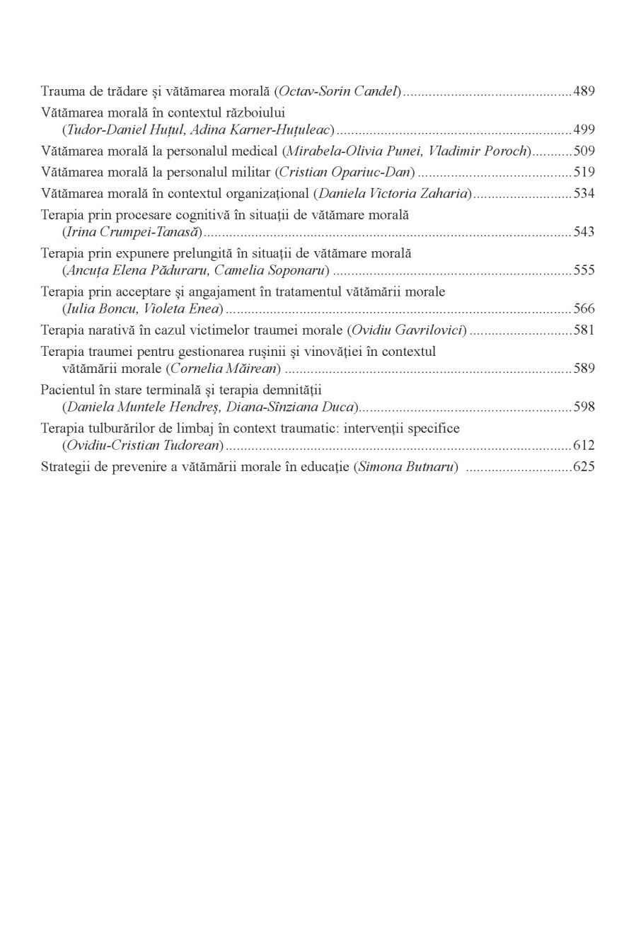 Volumul se încheie cu un capitol axat pe strategiile de prevenție a vătămării morale în contextul educațional, ce are un rol major în promovarea atitudinilor și comportamentelor morale.