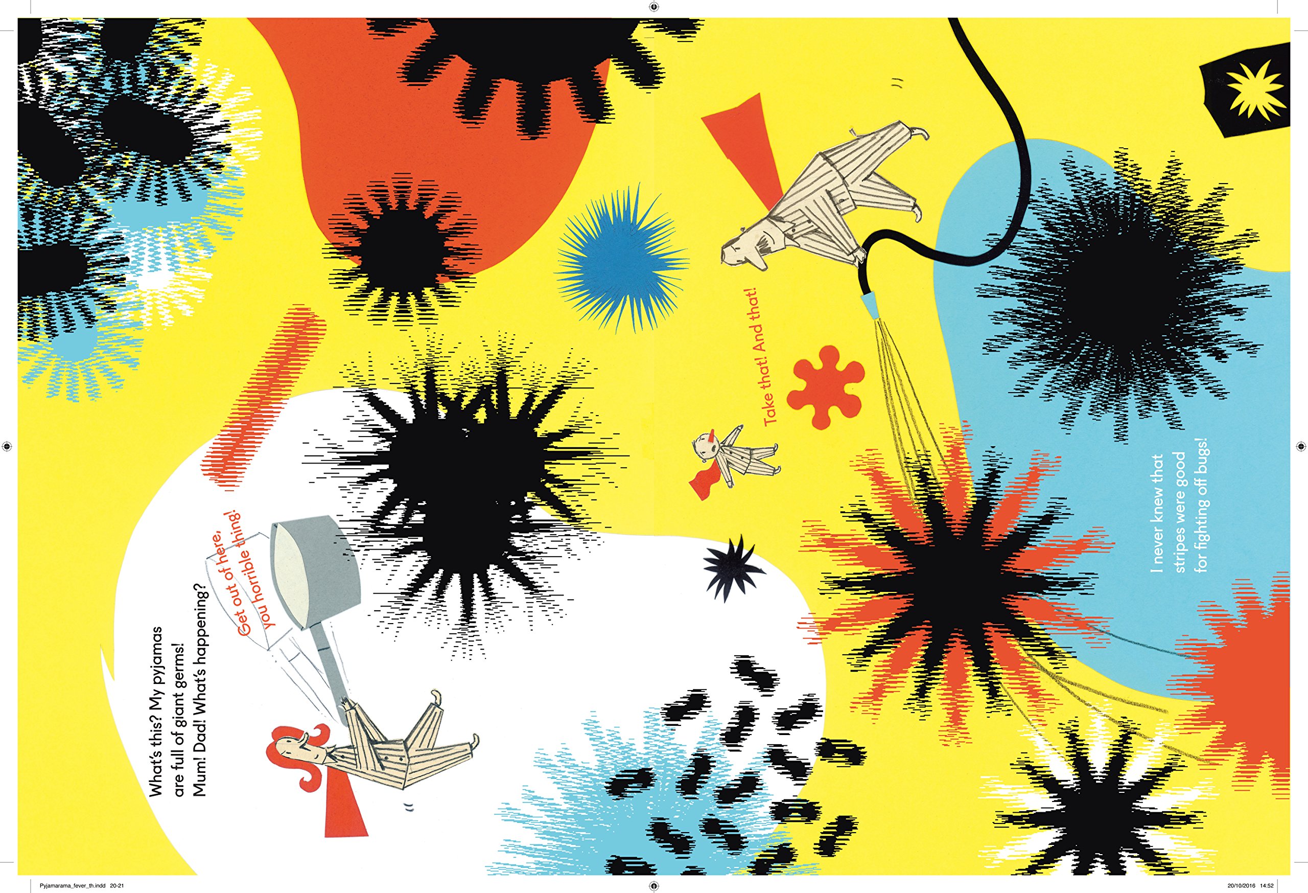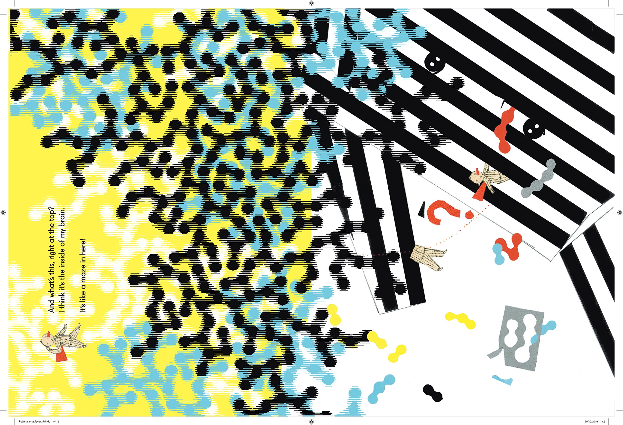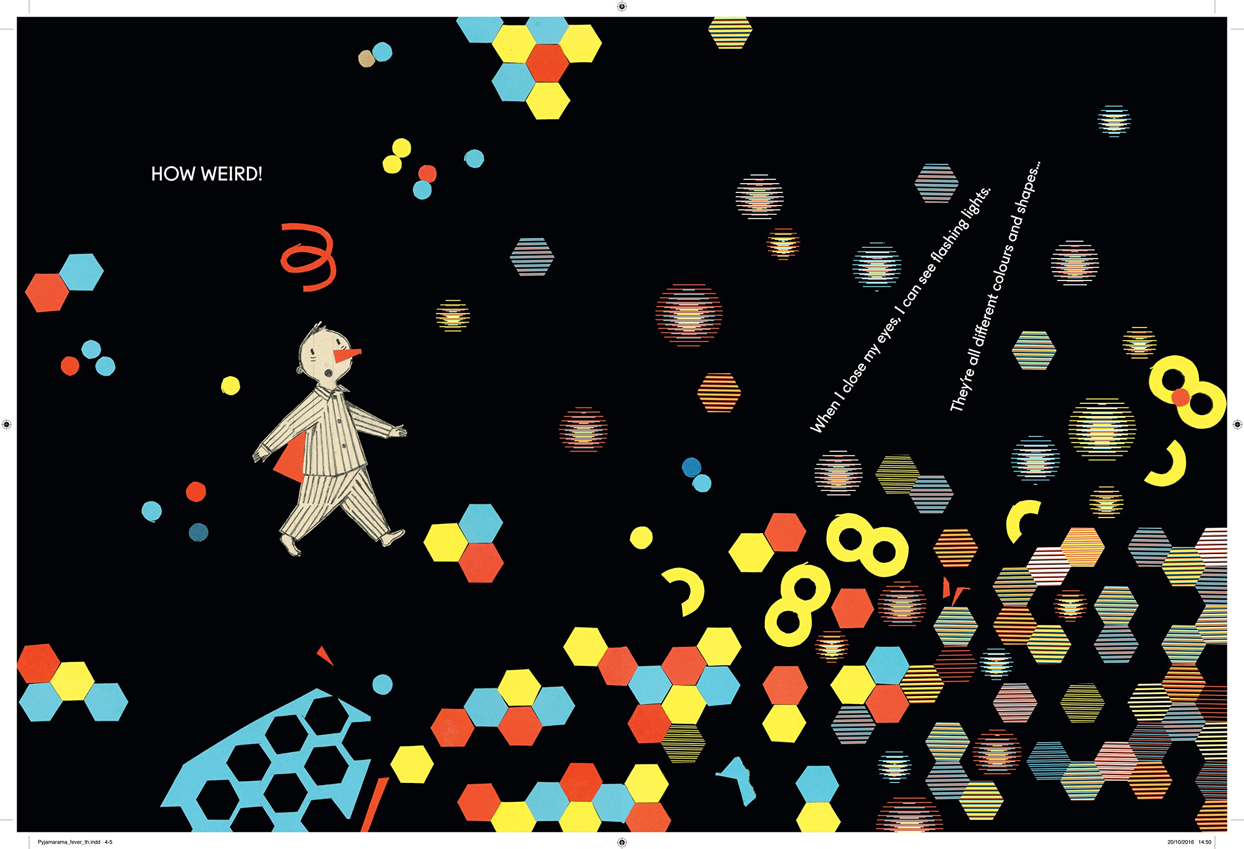 When you see the world in Pyjamavision, everything looks extraordinary! Move the stripy screen over each page and watch the colours and shapes come to life. When a little boy puts on his pyjamas and goes to bed, he falls into a dazzling dreamworld of swirling stripes, shimmering spots and other strange sights. Come with him on a fabulous trip where you won’t be able to believe your eyes….