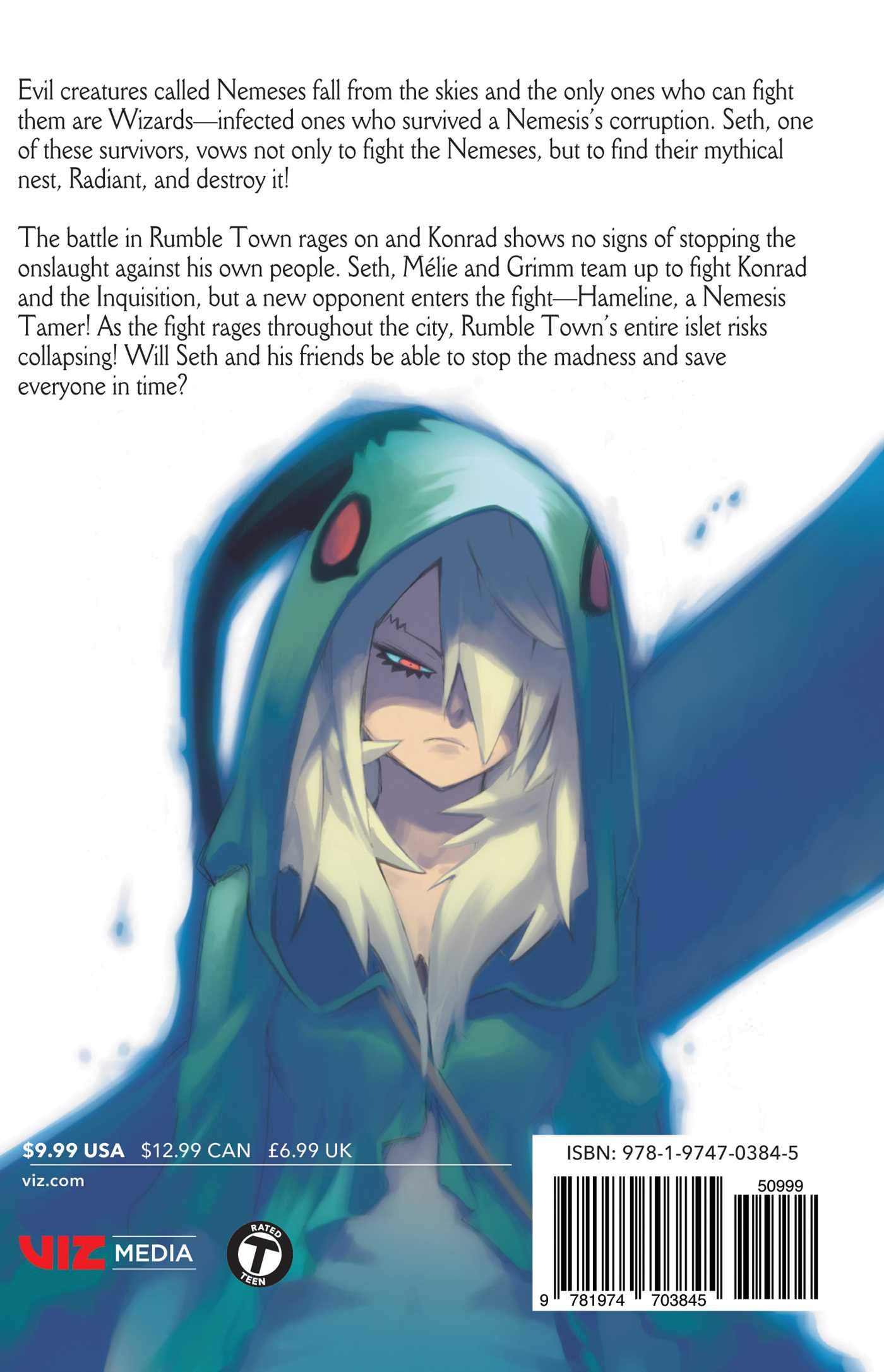 Seth is an aspiring wizard living in a pastoral village under the watchful eye of his mentor. Like all wizards, he is an “infected”: one of the few living creatures that has survived contact with a Nemesis, creatures fallen from the sky that contaminate all they touch. His apparent immunity led him to choose a path that seemed to be perfect—to become someone who hunts and fights the Nemesis. But Seth longs for a quest that goes beyond the simple hunt for monsters. He wants to find their home, Radiant. Along with other wizards, he travels the world in search of Radiant, under the sinister eye of the Inquisition…
