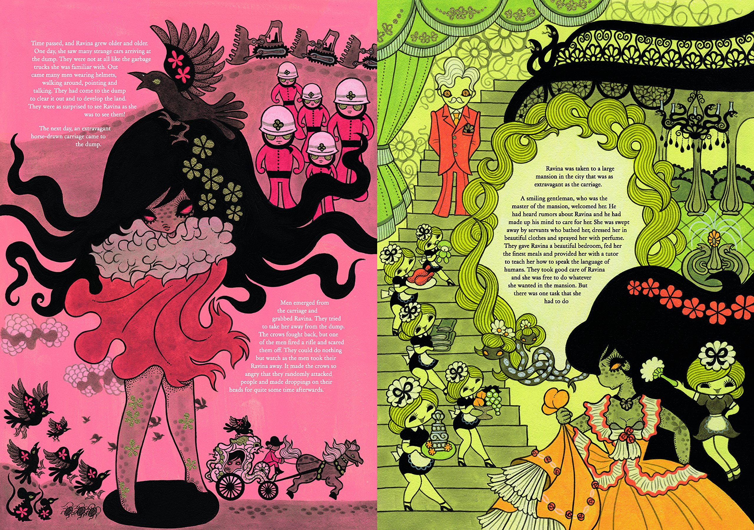 A bewitching and beautiful tale of an orphan girl who was raised by crows in a trash heap. One day, a dying witch gifts her with a mysterious magic wand and her life changes forever! Now, the human world is hers to play with... Or will this land of fear and corruption prove too much for the fledgling witch? In a time of witch hunts, Ravina must have her wits about her!