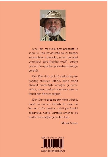 Unul din motivele omniprezente în lirica lui Dan David este cel al trecerii inexorabile a timpului, numit de poet „monstrul care înghite totul”, căreia umanul nu-i poate opune decât creația perenă. Dan David nu se lasă sedus de prețiozități stilistice ieftine, dând credit absolut sincerității emoției și cursivității, ceea ce oferă poemelor sale un fericit aer de prospețime. Dan David este poetul fără vârstă, dacă nu cumva închide în sine, ca într-un cufăr prețios, găsit pe fundul oceanului, toate vârstele omenirii cu toată frumusețea și misterul lor.