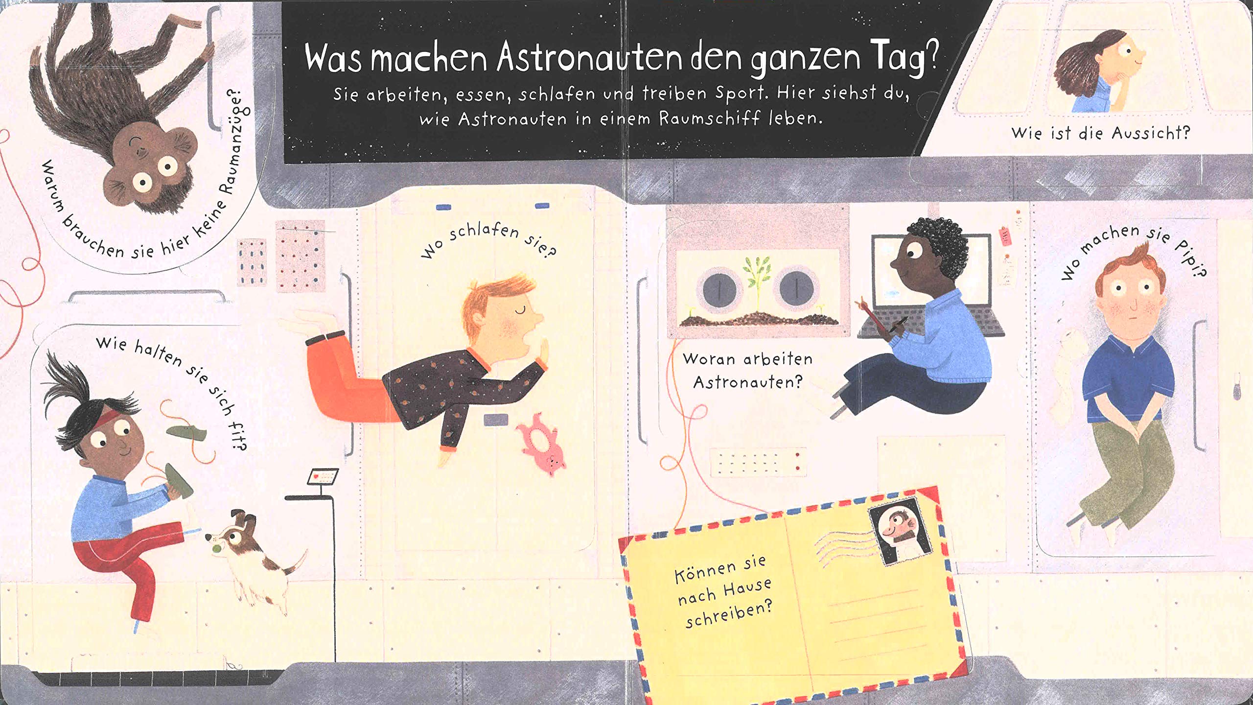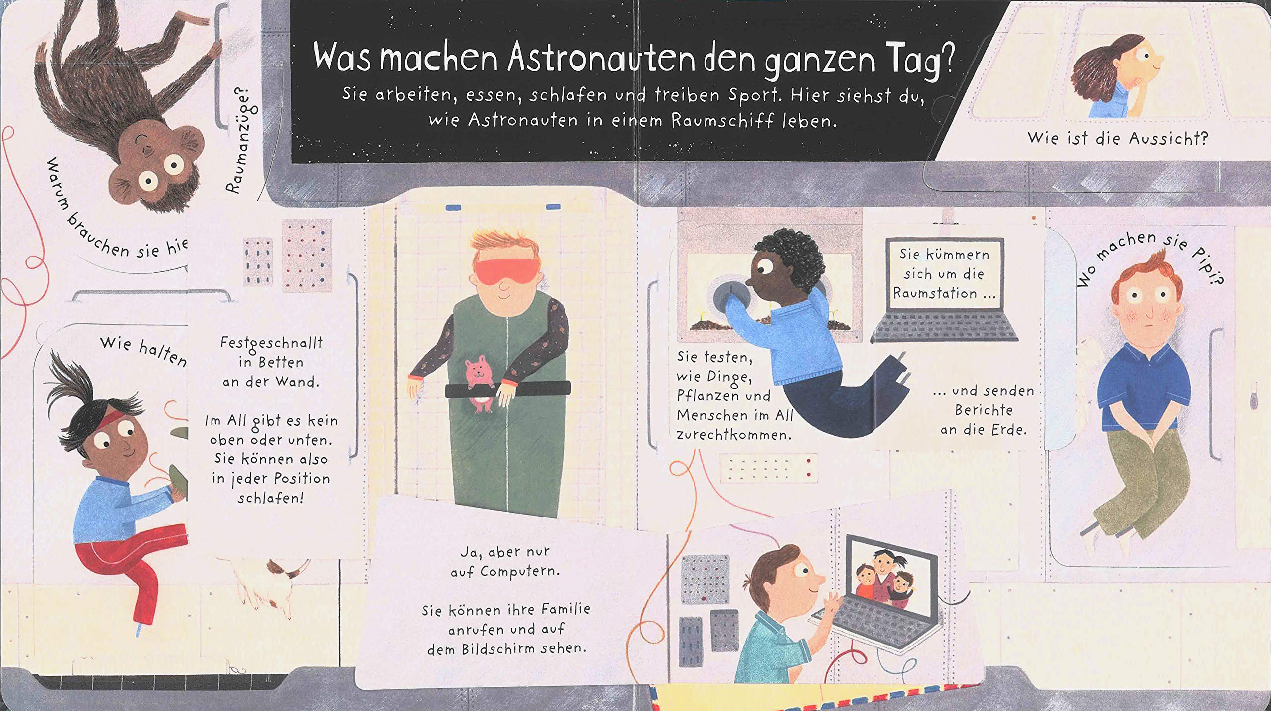 Wie gelangt man in den Weltraum? Und was gibt es dort oben zu tun? Können Menschen den Mars besiedeln? Unter mehr als 40 Klappen erfährst du die Antworten auf diese spannenden Fragen.