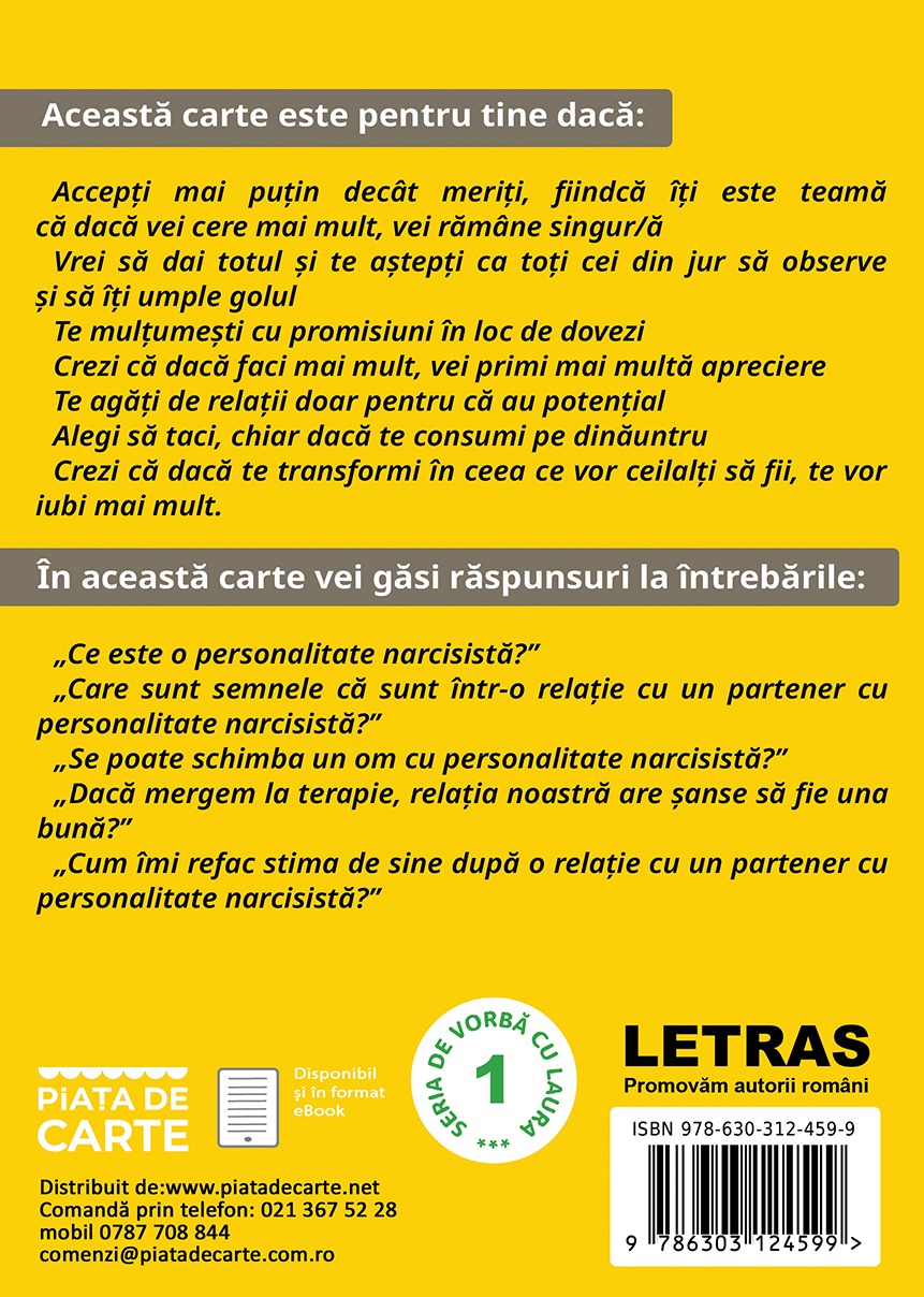 In cartea Relatia cu o personalitate narcisista vei gasi raspunsul la intrebarile: