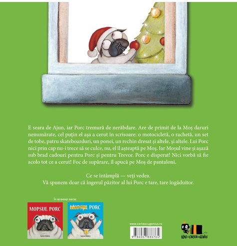 E seara de Ajun, iar Porc tremură de nerăbdare. Are de primit de la Moș daruri nenumărate, cel puțin el așa a cerut în scrisoare: o motocicletă, o rachetă, un set de tobe, patru skateboarduri, un ponei, un rechin dresat și altele, și altele. Lui Porc nici prin cap nu-i trece să se culce, nu, el îl așteaptă pe Moș. Iar Moșul vine și așază sub brad cadouri pentru Porc și pentru Trevor. Porc e disperat! Nici vorbă să fie acolo tot ce a cerut! Foc de supărare, îl apucă pe Moș de pantaloni.
