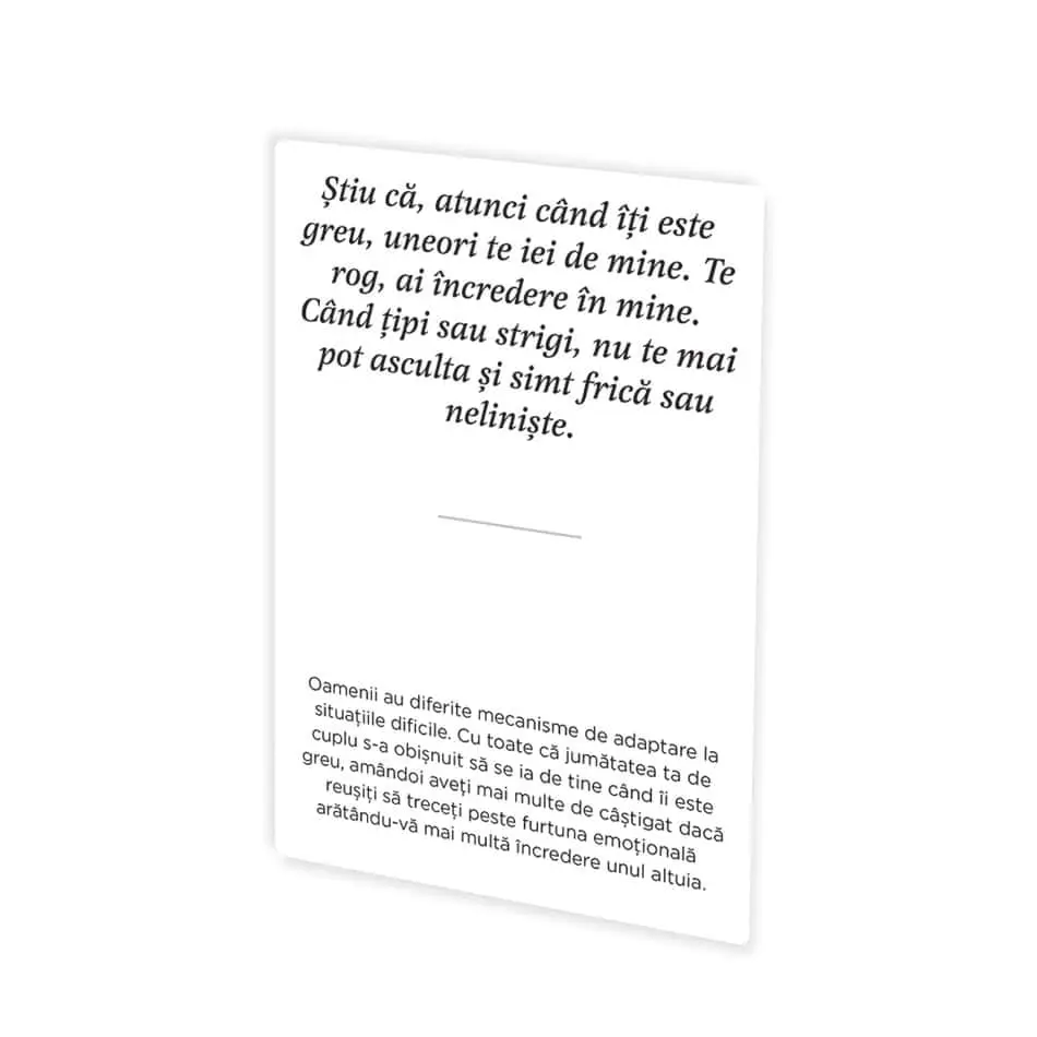 Carduri pentru îmbunătățirea competenței relaționale. Setul conține 96 de replici cu sens pentru a trece de la conflict la conectare.