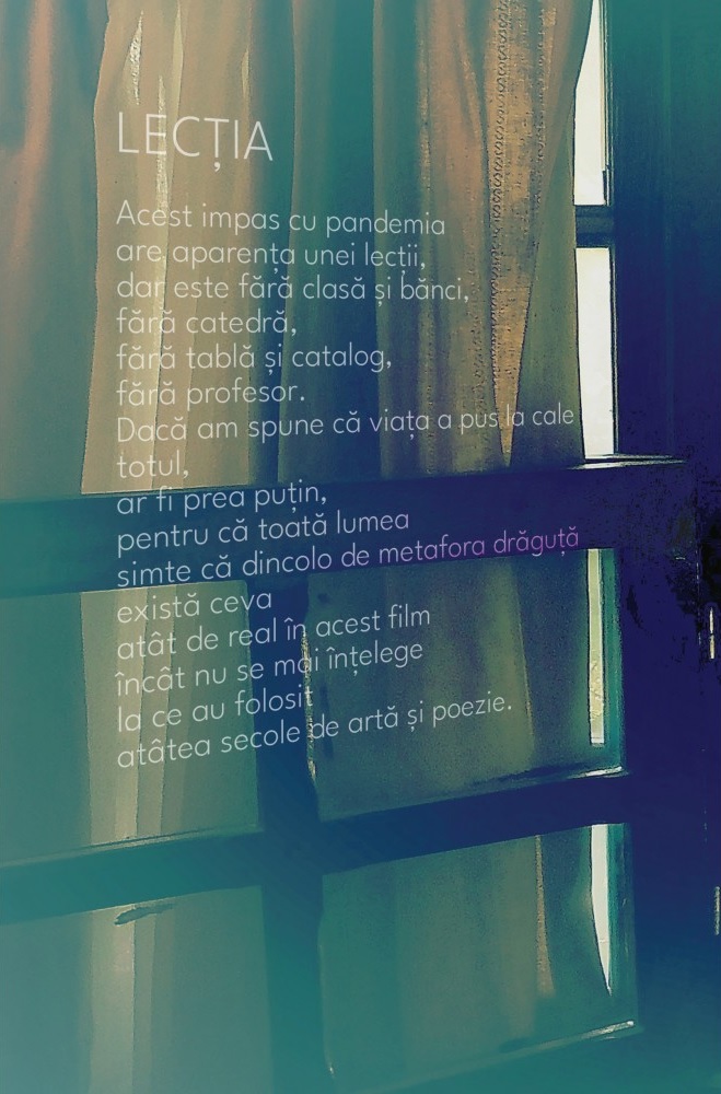 Chiar din martie, când a început totul, încă de la primele restricții, am simțit că întâmplările și situațiile la care luam parte – fie ca personaj implicat, fie ca spectator – conțin prețioase nuclee cu potențial poetic, așa că am căutat să nu ratez șansa.