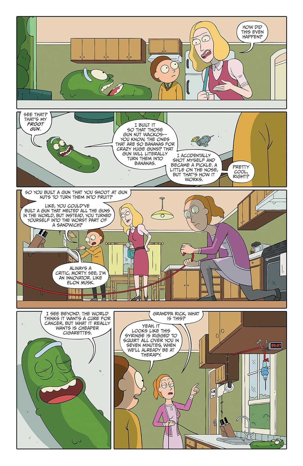 Watch Rick and Morty evade would-be assassins hellbent on their demise (Rick and Morty: Rick Revenge Squad), battle sexy, undead vampires (Rick and Morty: Let the Rick One In), turn themselves into cucumbers . . . er―pickles (Rick and Morty Presents: Pickle Rick), celebrate blumbus (Rick and Morty Presents: A Very Special Blumbus), and take on eldritch gods (Rick and Morty vs. Cthulhu). Perfect for newbies and longtime fans alike, this small but mighty five-story collection features the all-star talents of Kyle Starks (Kill Them All), Tini Howard (X-Men), Delilah S. Dawson (Star Wars), Zac Gorman (Hello Neighbor), Jim Zub (Conan the Barbarian), Marc Ellerby (Doctor Who), CJ Cannon (Solar Opposites), Troy Little (Cult of the Lamb), and more!