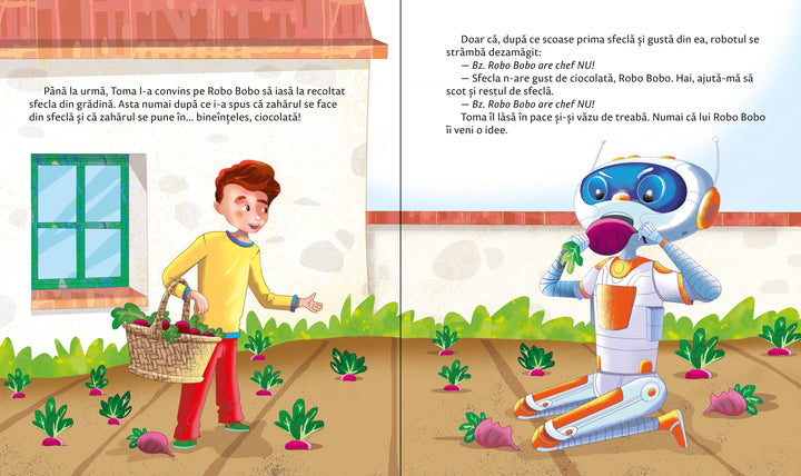 Când trebuie să ajute la cules sfecla de zahăr din grădină, el preferă să planteze direct ciocolată. (Oare o să răsară ceva, ce credeți?)
