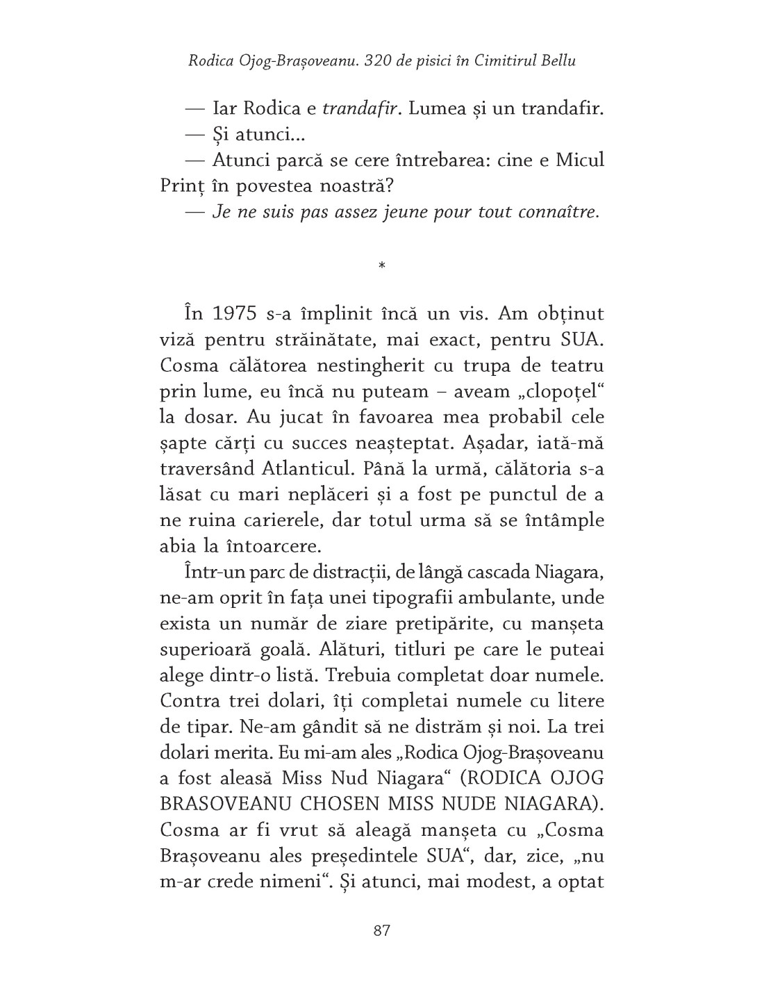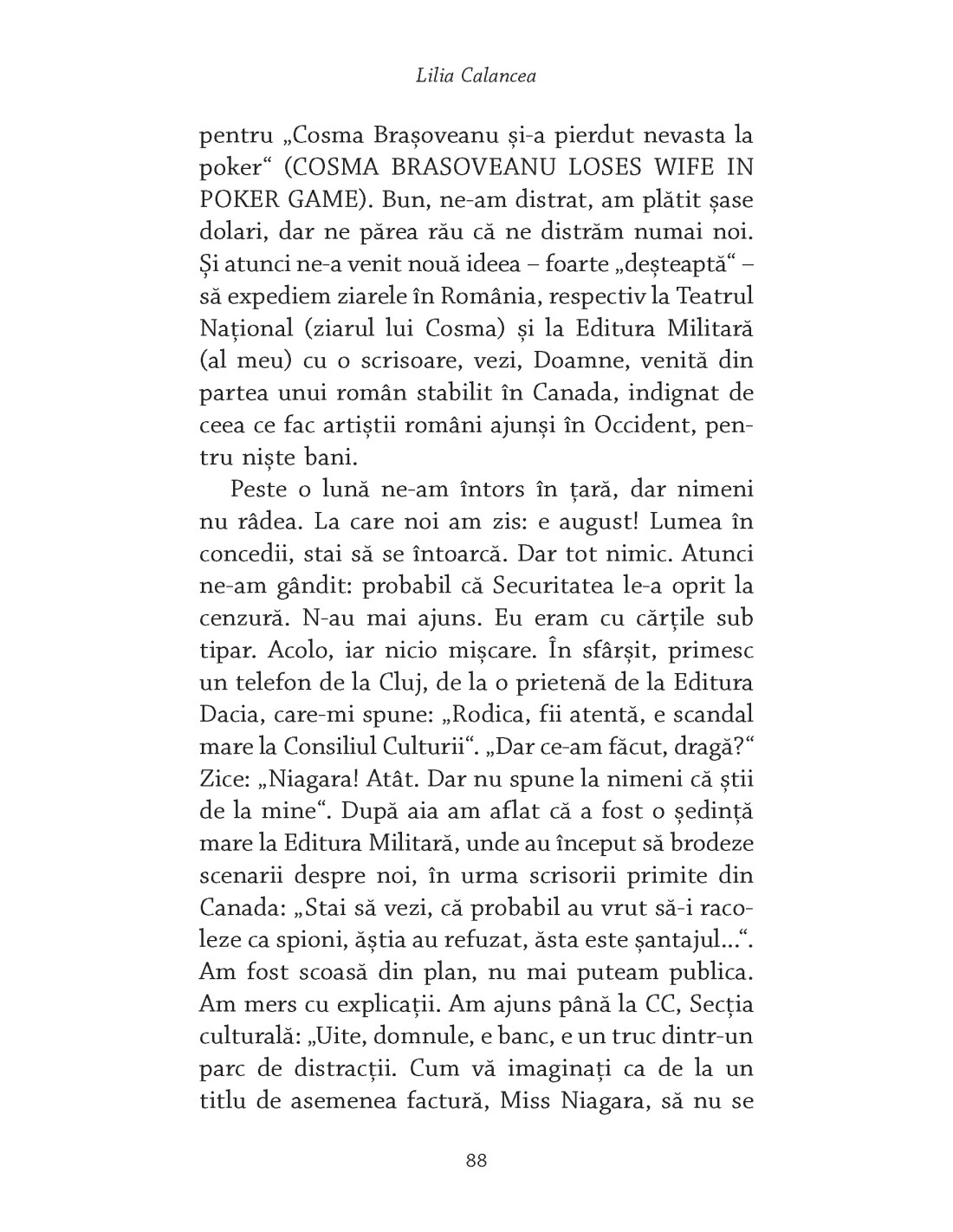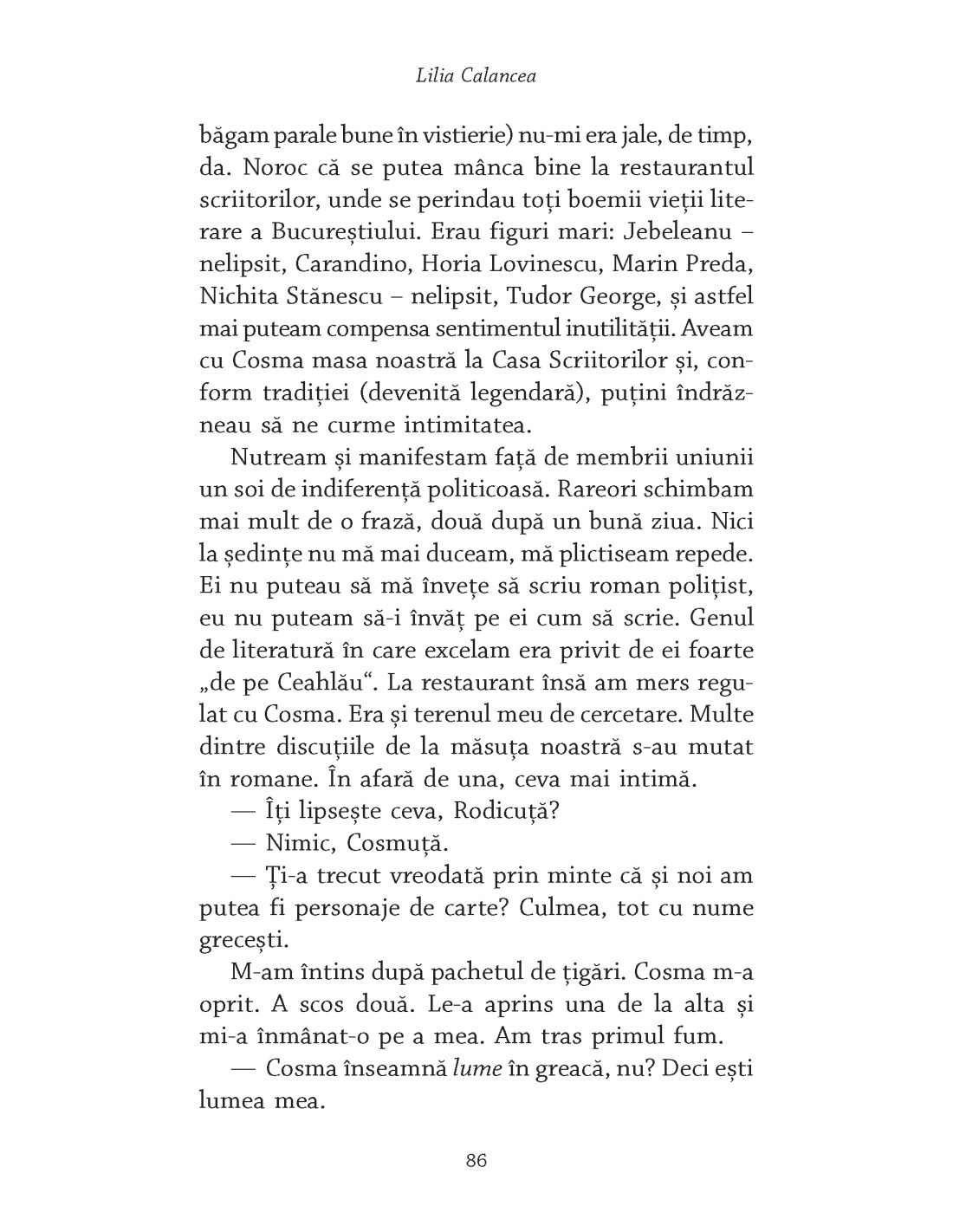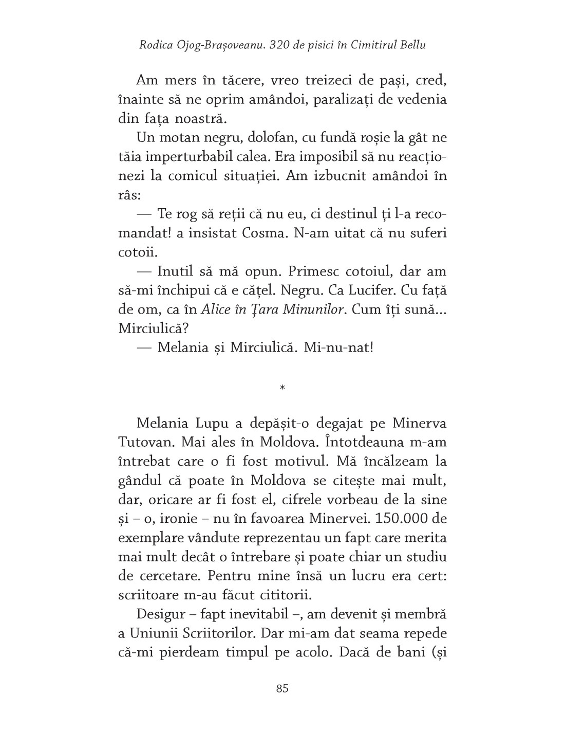 Concret, maiorul Tutovan. Prenumele, Minerva, divin. La fel ca materia, cum altfel? Cheia succesului mi-o pot lămuri doar parţial. Primo, că n-am fost singura terorizată, am fost mii – Doamne, păzeşte-ne somnul, o mai visez şi azi! E o răzbunare subtilă – se simte, nu-i aşa? – să faci din torţionarul din liceu un personaj literar caraghios, deşi cu mintea brici. Secundo, orice torţionar are nevoie de o victimă pe care să o destabilizeze şi să o alimenteze constant prin frică şi un nesfârşit complex de inferioritate. Dobrescu c’est moi!”