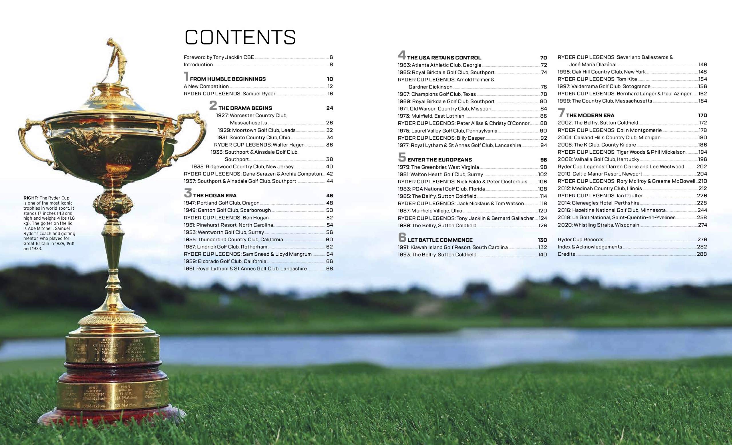 The Ryder Cup tells the complete story of one of the world's most prestigious sporting contests. Fiercely fought every two years, it uniquely pits teams from two golfing giants – Europe and the USA – against each other in a sport that is more usually associated with individual play.