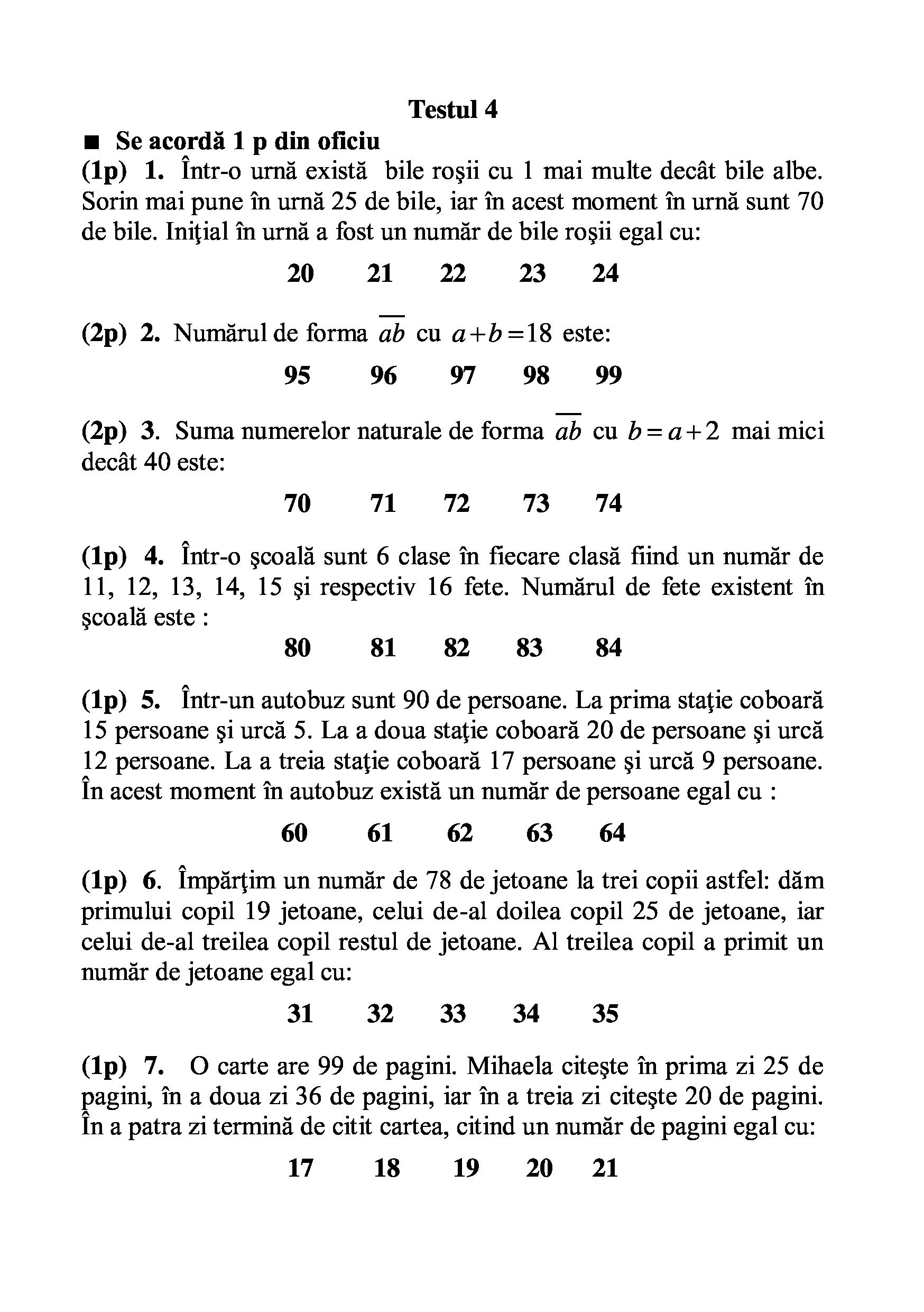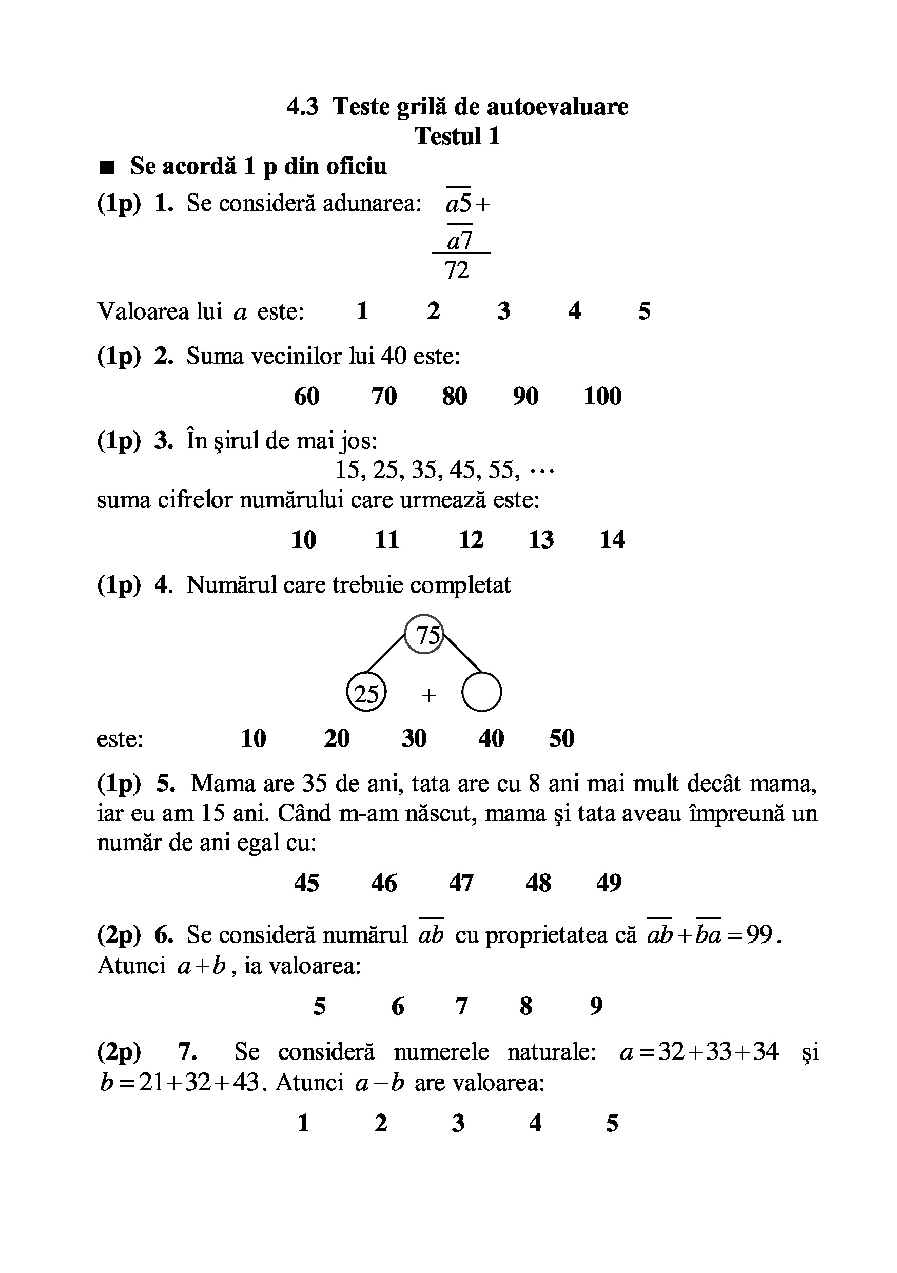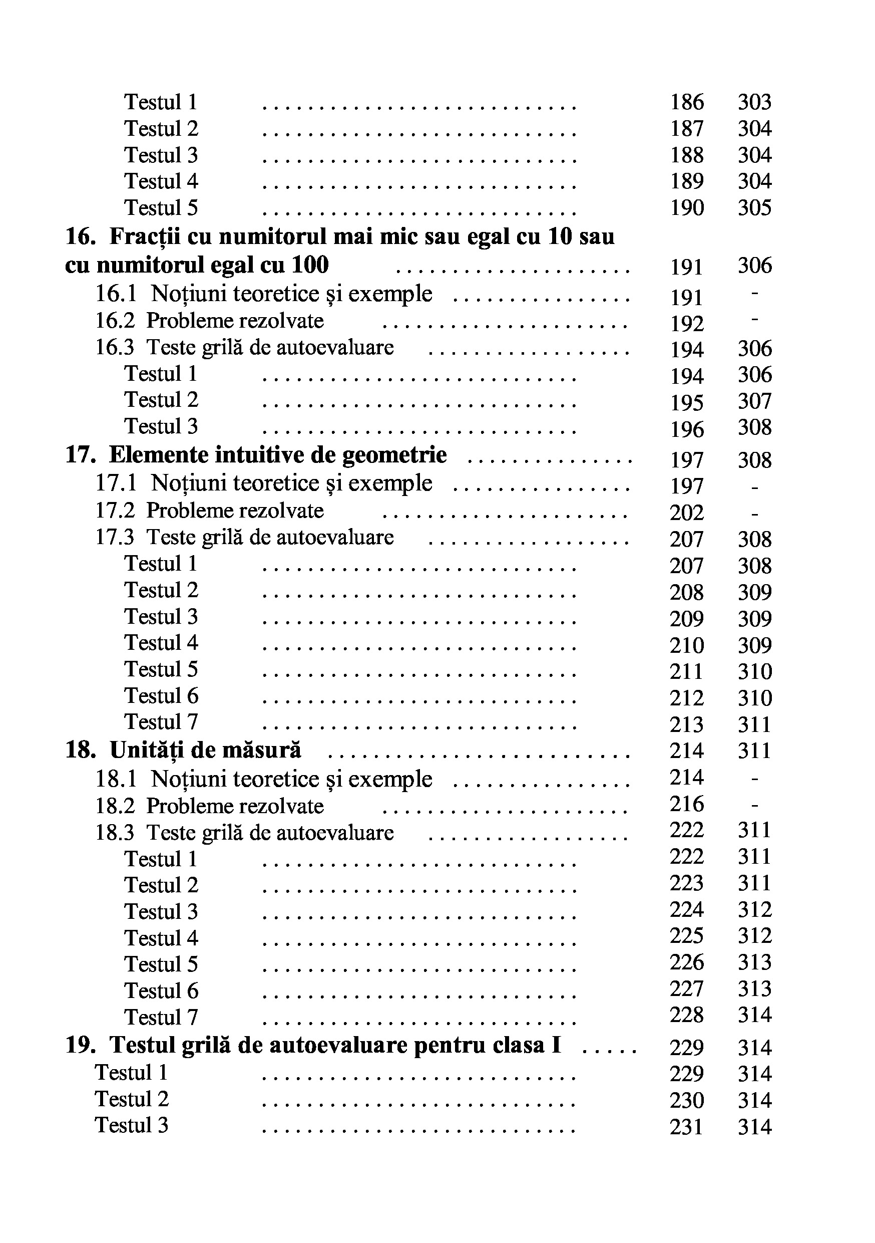 Lucrarea se încheie cu mai multe teste grilă de autoevaluare pentru fiecare clasă în parte (7 pentru clasa I, 7 pentru clasa a II – a, 10 pentru clasa a III – a și 10 pentru clasa a IV – a) ajutând elevul să se auto verifice rapid în ceea ce privește însușirea corectă a noțiunilor din clasa respectivă.