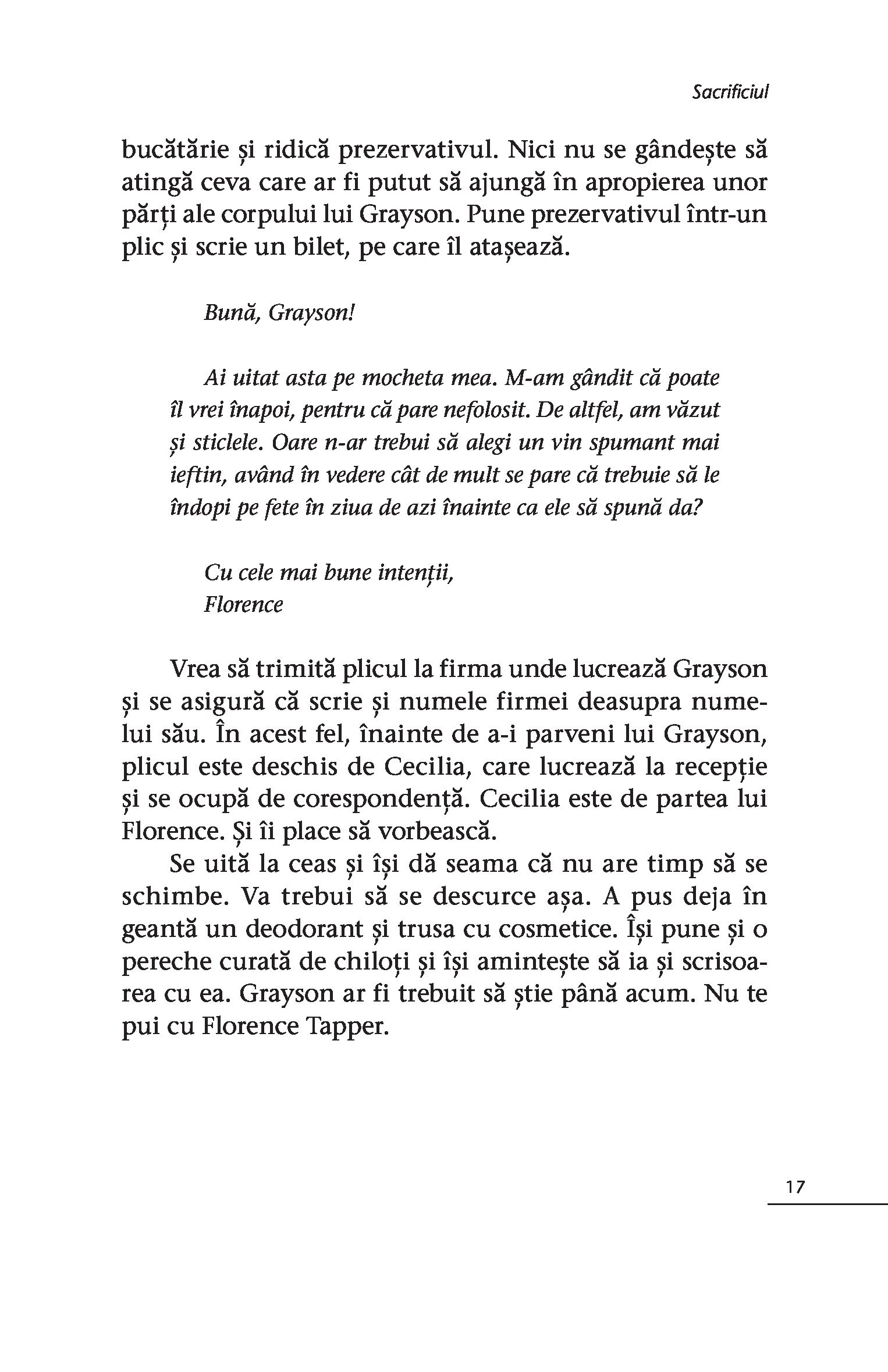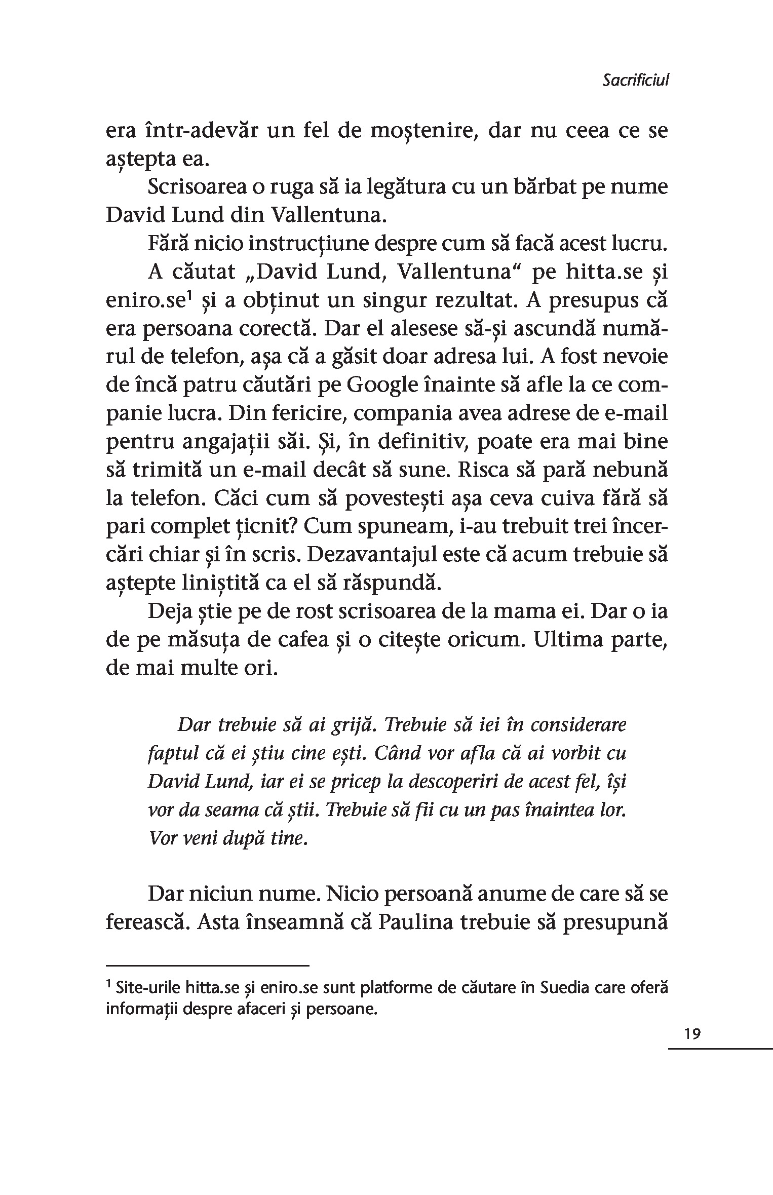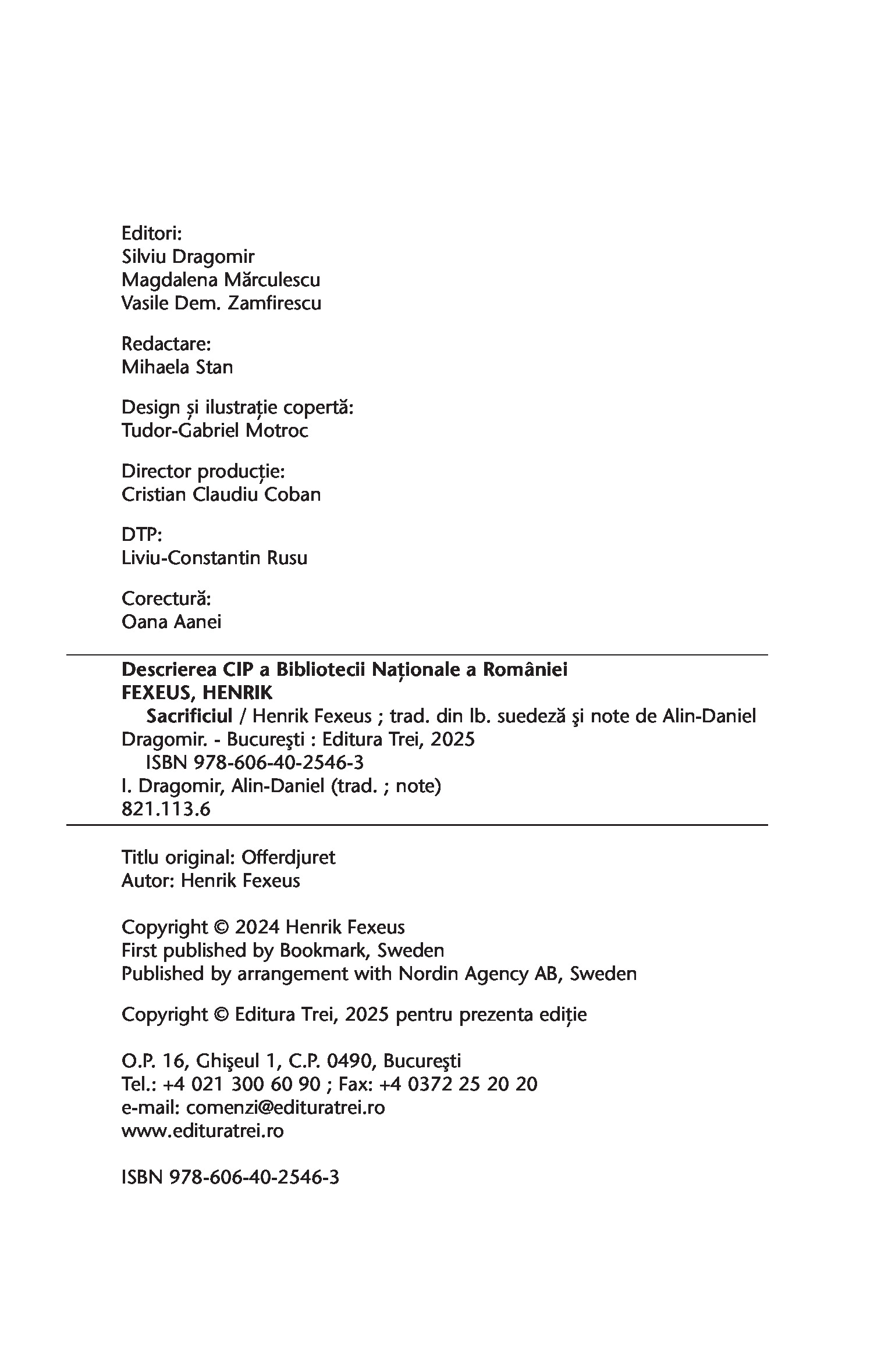Sunt incredibil de mândru de această carte. Mă reprezintă foarte mult, dar sper că va fi și o surpriză. A fost nevoie de doi ani să scriu Sacrificiul, iar acum abia aștept ca oamenii să pătrundă în lumea lui Florence și David. - HENRIK FEXEUS