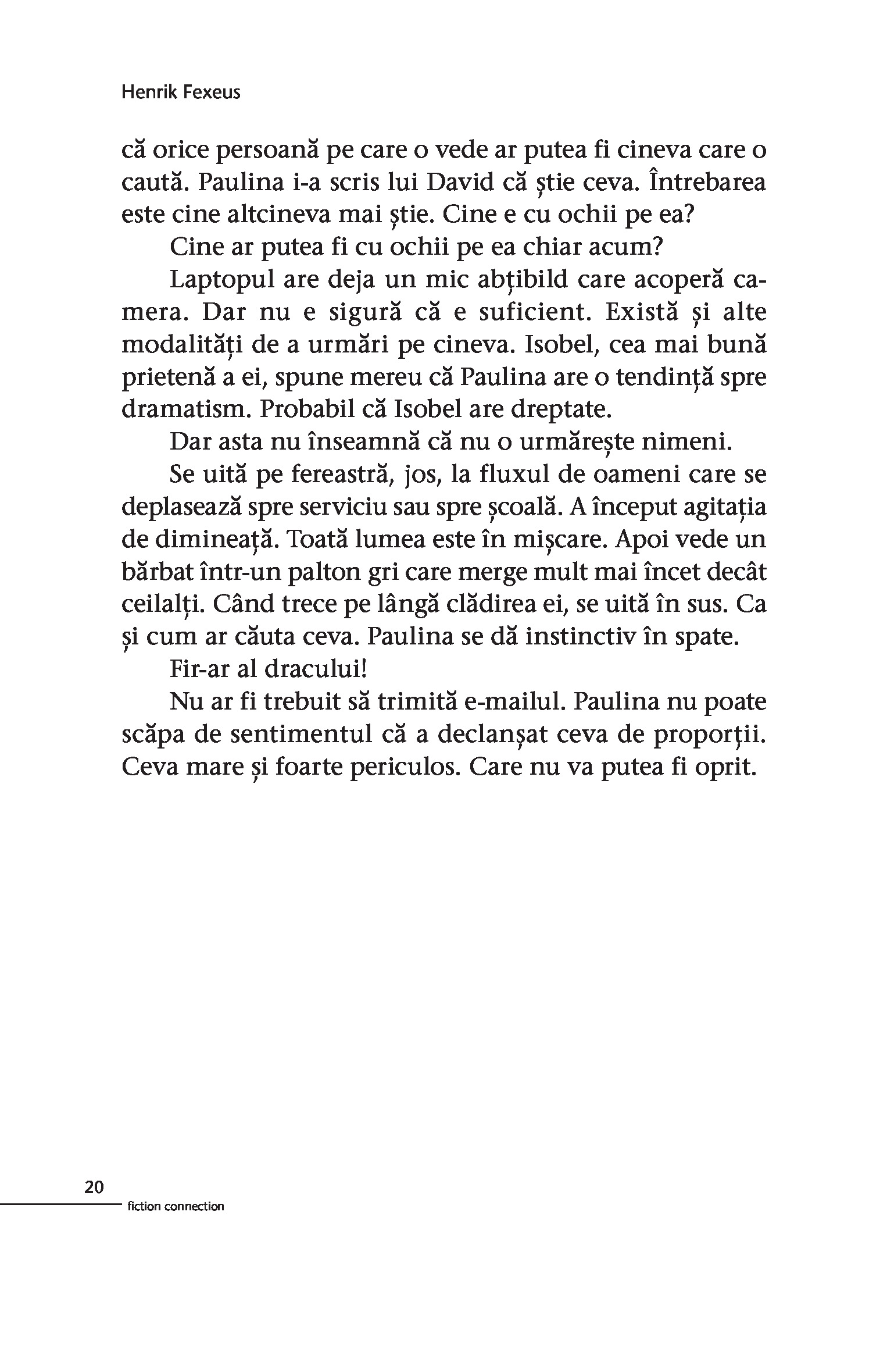 HENRIK FEXEUS, psiholog de profesie, este unul dintre cei mai apreciați conferențiari suedezi. A realizat experimente psihologice spectaculoase la SVT și TV4 și a debutat în 2007 cu volumul Arta de a citi gândurile (publicat în limba română la Editura Trei). Cărțile lui au fost premiate, s-au vândut în peste un milion de exemplare și au fost traduse în peste 30 de limbi. A debutat în literatură cu romanul The Lost, prima carte a trilogiei Final Illusion. La Editura Trei, au mai apărut Manualul abilităţilor sociale superioare și Reload: Cum să-ți încarci bateriile: Arta recuperării inteligente (împreună cu Catharina Enblad). Tot la Editura Trei au apărut și cele trei volume ale seriei Vincent și Mina, scrisă împreună cu Camilla Läckberg: Cutia, Cult și Miraj. Seria este în curs de adaptare pentru televiziune.