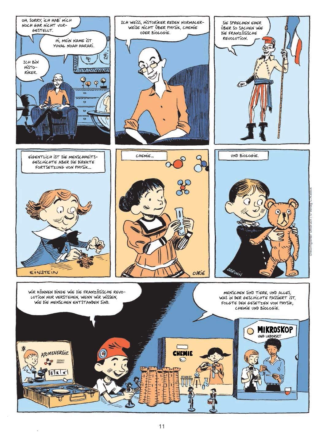 "DER WELTBESTSELLER ""EINE KURZE GESCHICHTE DER MENSCHHEIT"" - JETZT ALS GRAPHIC NOVELYuval Noah Harari ist seit einigen Jahren der erfolgreichste Sachbuchautor der Welt. Von seiner ""Kurzen Geschichte der Menschheit"" wurden in Deutschland über eine Millionen Exemplare verkauft. Jetzt erscheint der Weltbestseller in vier Teilen als Graphic Novel. Den Anfang macht ""Sapiens. Der Aufstieg"". Harari noch zugänglicher, noch unterhaltsamer, aber genauso intelligent und lehrreich - ein Muss nicht nur für seine Fans.Vor Millionen von Jahren war der Mensch bloß ein relativ unbedeutender Vertreter der Tierwelt. Wenn die Erde ein Königreich gewesen wäre, hätten andere Tiere auf dem Thron gesessen - Löwen vielleicht oder Elefanten. Heute besitzen die Menschen Kräfte, derentwegen sie den anderen Tieren wie Götter vorkommen müssen. Wie konnte ein körperlich relativ schwacher Affe sich zum Herrn der Welt aufschwingen? Und was musste er tun, um sich die Erde untertan zu machen? In ""Sapiens"", der Graphic Novel, tritt Yuval Noah Harari selber auf. Gemeinsam mit seiner Nichte Zoe und anderen geht er diesem Rätsel auf den Grund. Sie erkunden das Schicksal der Neandertaler, schauen sich die Gameshow «Evolution» an und verfolgen die Abenteuer von ""Prehistorik Bill"". Schon bevor die Menschen sesshaft wurden, waren sie die Könige der Welt. Wie es dazu kommen konnte, zeigt dieses Buch mit viel Witz, unwiderstehlichem Charme und einer Menge an schrägen Ideen. Wer sich bisher dem Bann von Hararis Büchern hat entziehen können, der wird jetzt kapitulieren.Noch zugänglicher, noch unterhaltsamer, aber genauso intelligent und lehrreich".