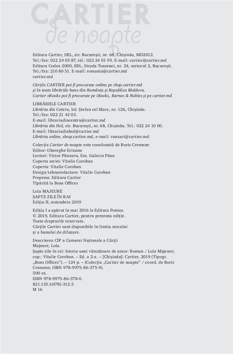 „7 zile în Rai” este istoria unei vânzătoare de amor. Adică, a unei prostituate. Nona face asta pentru bani, dar și din plăcere. Lucrează cu „tarif special”, prestând nu doar servicii sexuale. O poți lua acasă să îți facă curat sau să scuipați ambii în pod, dacă ți-e trist de unul singur. Nona e faină. La fel și familia sa.