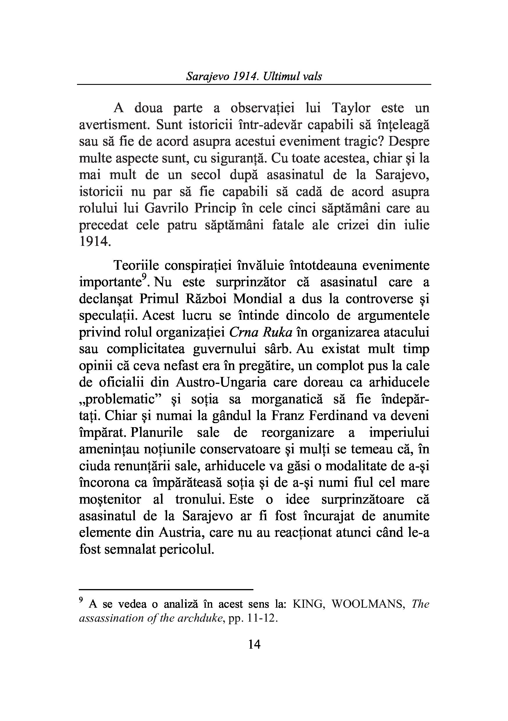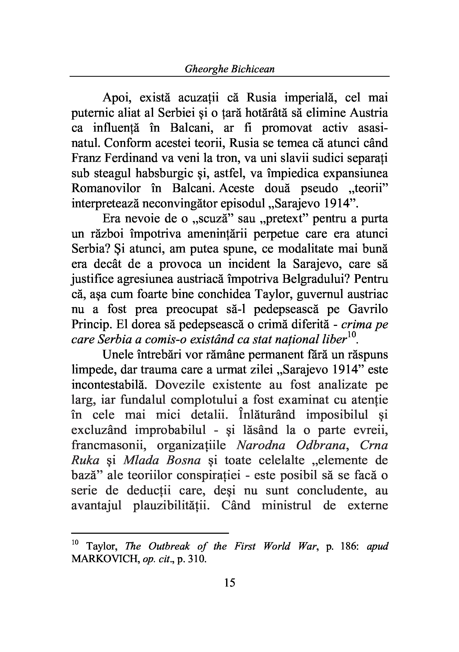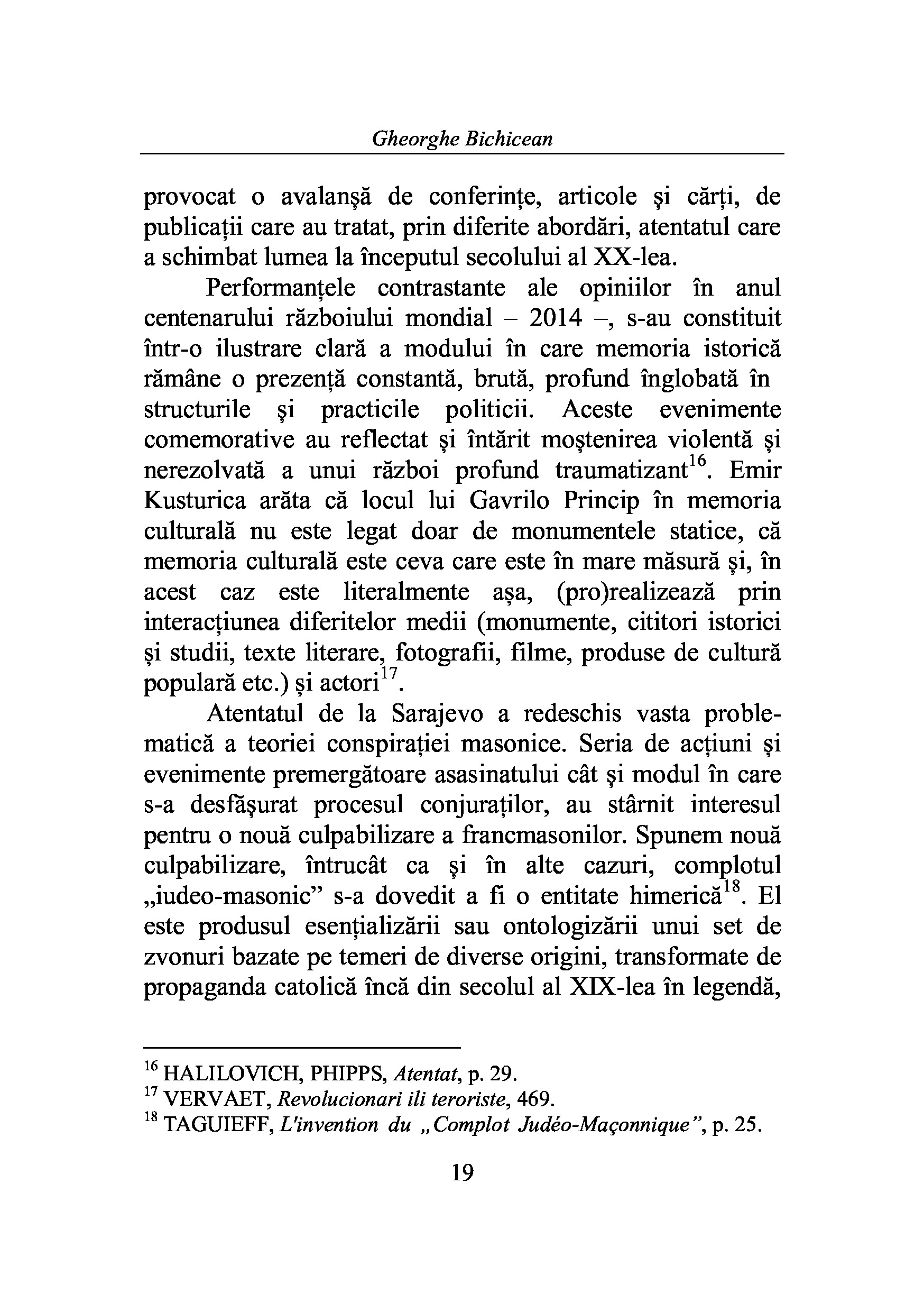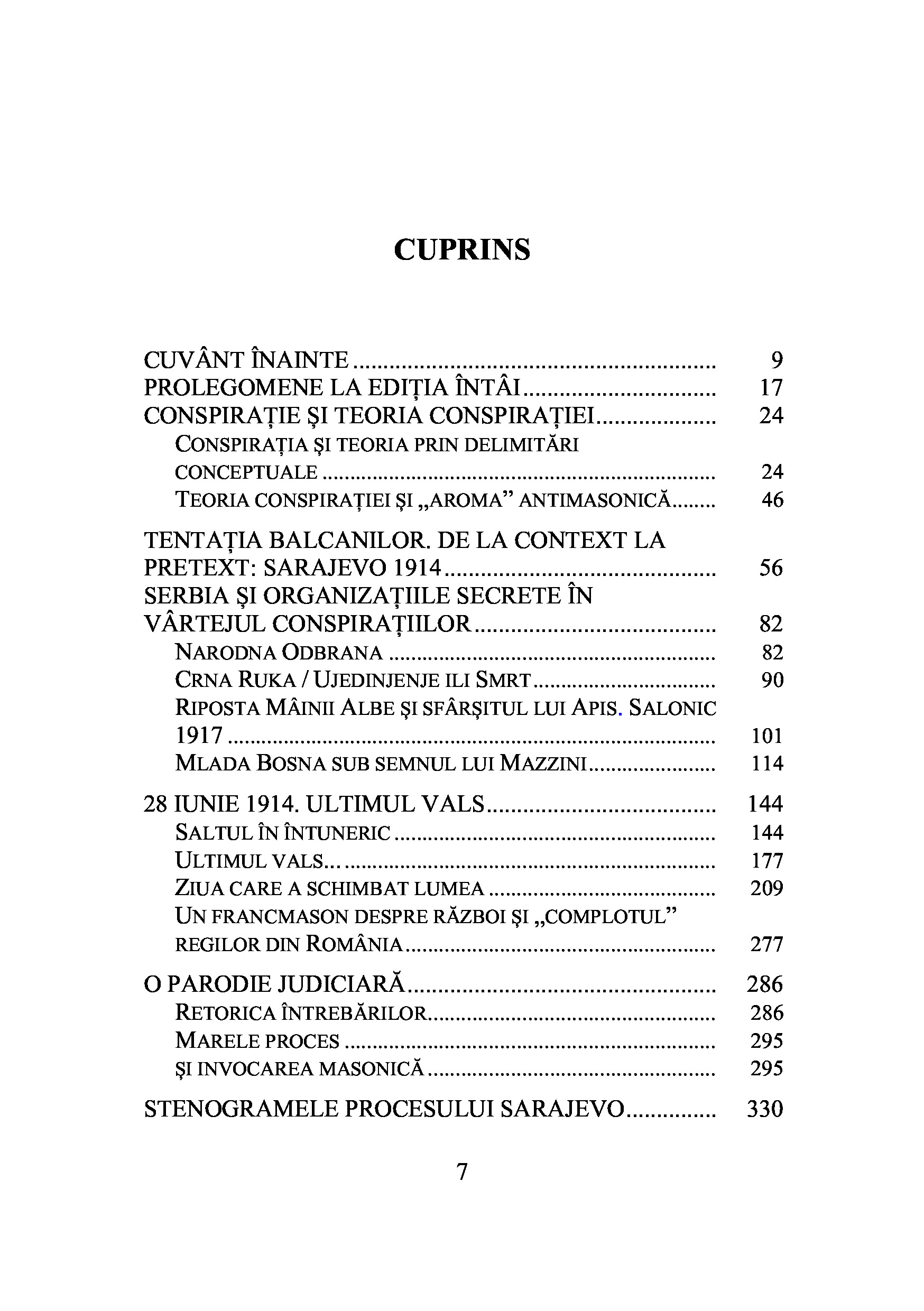 La 12 octombrie 1914, procesului din Sarajevo i s-a dat orientarea in acord cu politica diplomatica adoptata de Ballplatz, insistandu-se ca Francmasoneria a fost implicata in atentat. In procesul de la Salonic din 20 martie - 20 mai 1917, masoneria a fost din nou culpabilizata. Cu privire la implicare, la pregatirea atentatului de catre francmasoni, acuzatii au respins opinia juriului, toti sustinand ca aflasera despre apartenenta la Francmasonerie a unora dintre conjurati dupa ce au luat hotararea de a comite asasinatul. Au fost frecvente intrebarile prin care se urmarea sa se provoace raspunsuri prin care sa fie culpabilizata Francmasoneria. Marturisirile acuzatilor sunt consemnate in stenogramele procesului.