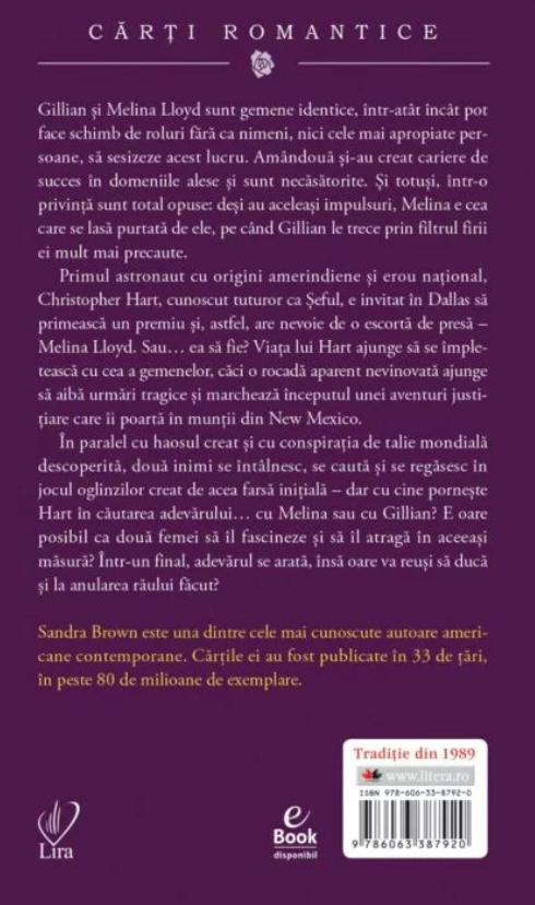 Sandra Brown este una dintre cele mai cunoscute autoare americane contemporane. Cărţile ei au fost publicate în 33 de ţări, în peste 80 de milioane de exemplare.