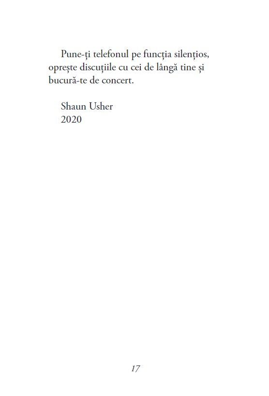 Răspunsul unui geniu al sunetelor dat admiratoarei sale în vârstă de 8 ani, elogiul unui mare critic literar adus acordurilor wagneriene, emoționantul mesaj de mulțumire al unei femei surde trimis unei orchestre, reflecții despre esența jazzului și o anchetă poznașă privitoare la originile punkului sunt doar câteva dintre părțile acestei simfonii orchestrate de Shaun Usher. Întinsă pe două secole, compilația în tonuri tragice și amuzante, stranii și intime este o mărturie a dragostei pentru muzică.
