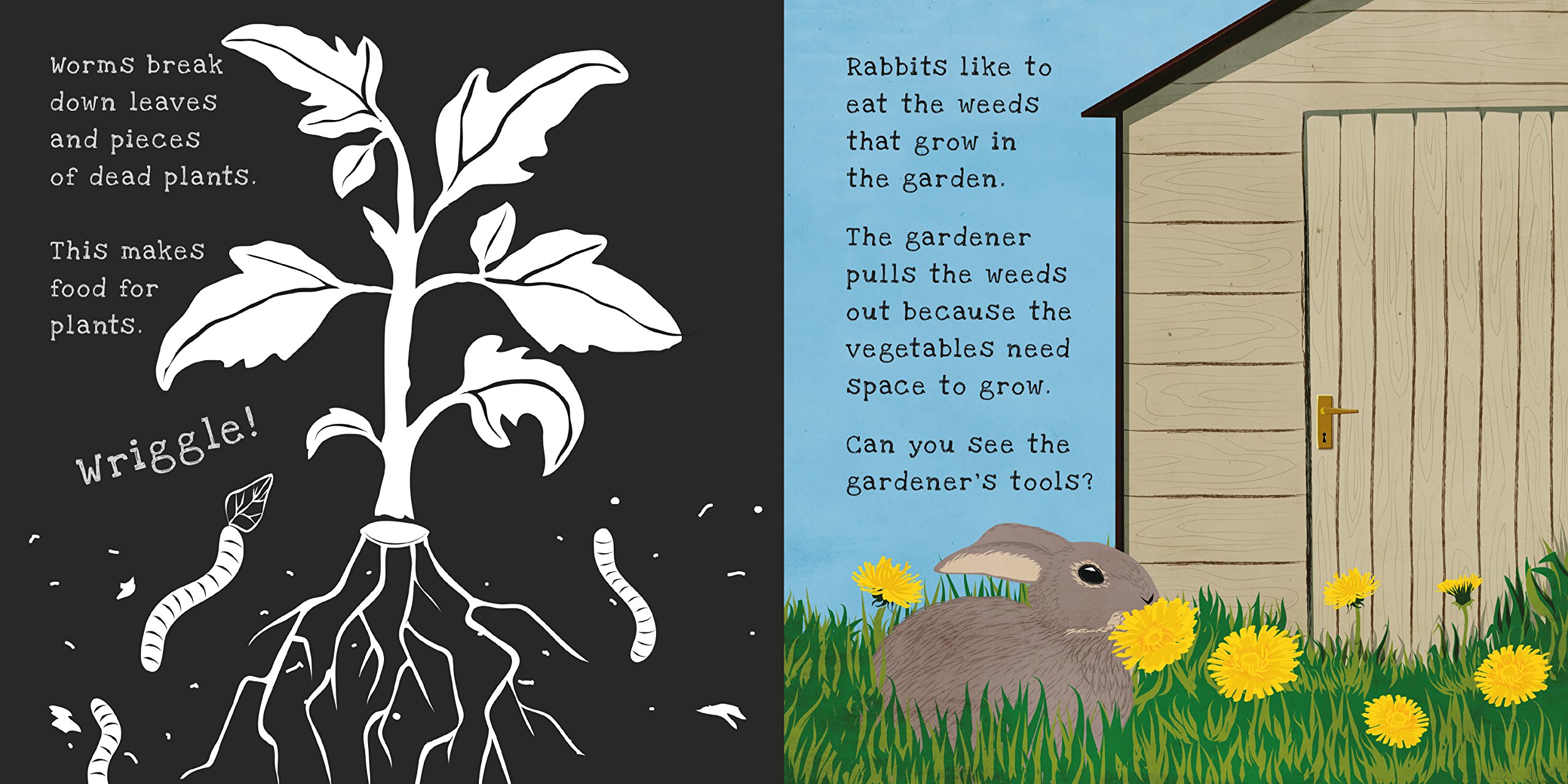 Discover the hidden wonders of the vegetable garden, with this gorgeously illustrated book that reveals natures secrets. By simply holding the book up to the light, or shining a torch behind each page, young children will be able to discover the animals and plants that live in and around a vegetable patch, from the worms in the soil, to the birds in the treetops. The innovative see-through feature fulfils a similar function to lift-the-flap books, but has the added interactive dimension of the child being able to see both the surface and the hidden picture at the same time.
