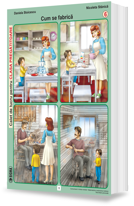 Editura Sigma oferă pentru Clasa pregătitoare, semestrul al II-lea, setul de caiete cu activităţi pentru elevi care cuprinde: Cum se fabrică, De la Pământ la Soare, Aventurile familiei Cangur, Carnavalul diversităţii. Fiecare caiet conţine 24 de pagini şi 2 coperţi cartonate şi poate fi folosit pe parcursul a patru săptămâni de şcoală. Din coperţi se pot decupa cărţi de joc care conţin imagini ale poveştii din cartea uriaşă, imagini din diferite domenii, jetoane cu litere şi semne matematice şi jocuri de decupat ce pot fi folosite la celelalte discipline. Cu cărţile de joc profesorul va putea realiza un număr mare de jocuri ce vor ajuta copilul să înveţe, să exerseze şi să recapituleze într-un mod inteligent. Restul paginilor cuprind jocuri specifice fiecărei discipline şi au legătură cu poveştile din cărţile uriaşe.