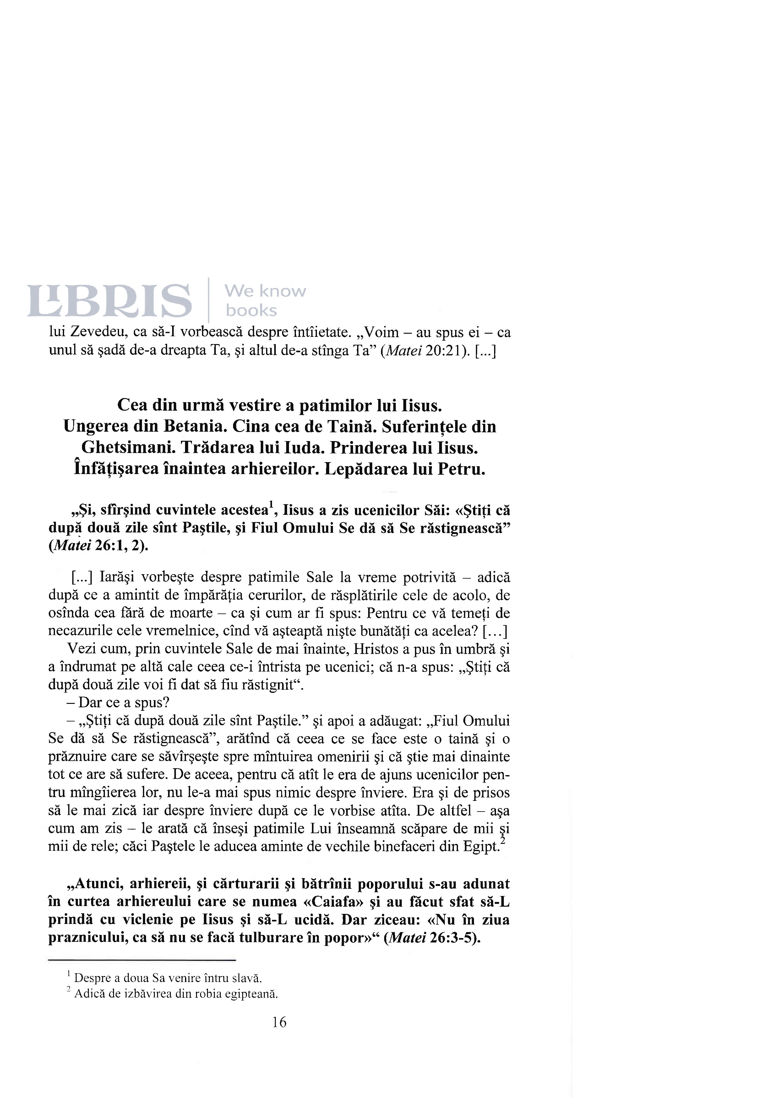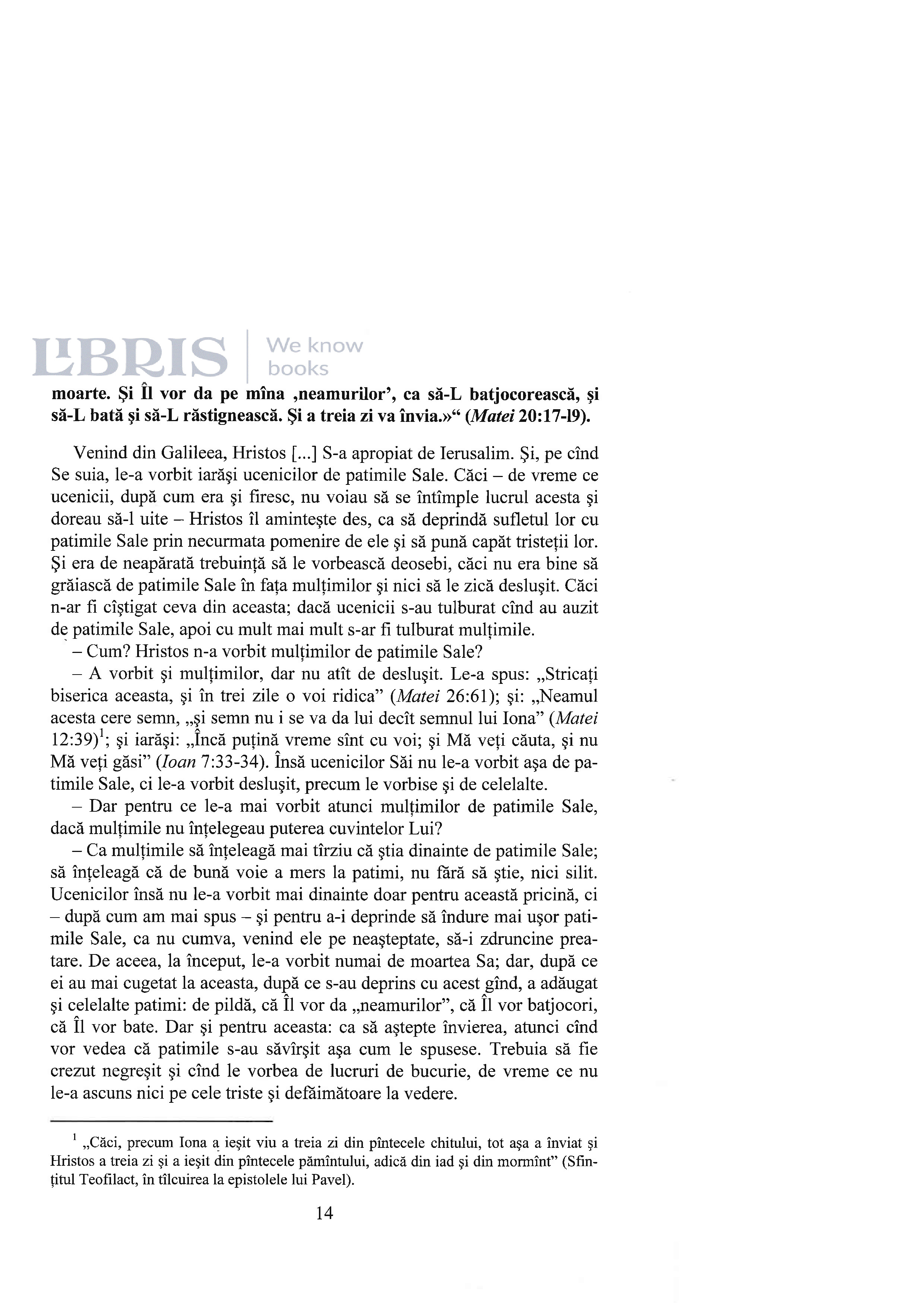 Deci toti sa ne bucuram, sa saltam, sa ne veselim! Caci, desi Stapînul nostru a biruit si a facut biruinta, totusi veselia si bucuria sînt si ale noastre, caci pe toate le‑a lucrat pentru mîntuirea noastra. (Sfîntul Ioan Gura de Aur)