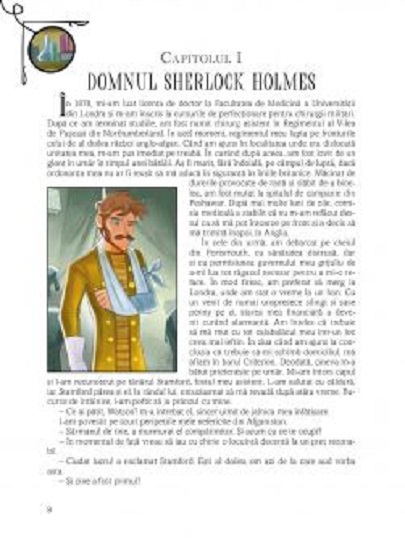 Studiu în roșu aprins” este o prezentare fascinantă a celui mai faimos detectiv din lume: Sherlock Holmes, un tip foarte isteț, cu o minte strălucitoare, pasionat de chimie și medicină, observator atent și expert neîntrecut în subtila și rafinata artă a deducției.