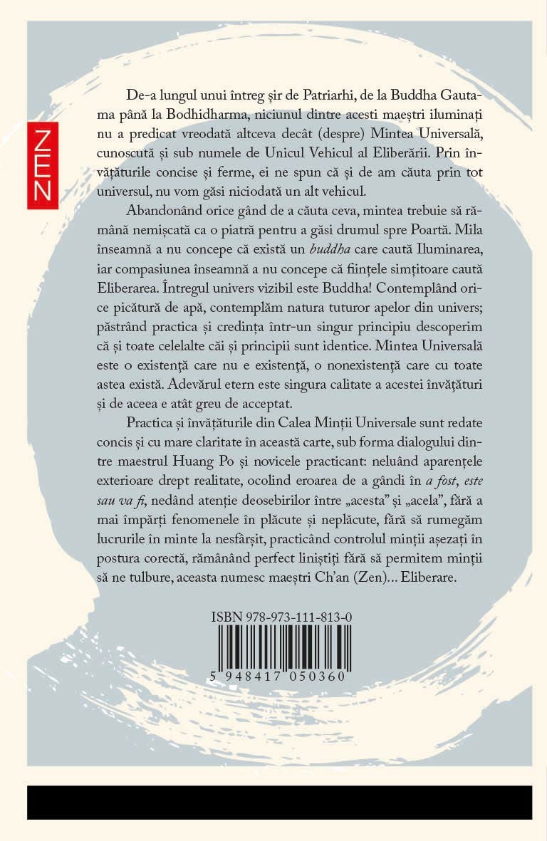Prezentul volum este o traducere completa a lucrarii Huang Po Ch`uan Hsin Fa Yao, un text chinezesc din secolul al IX-lea apartinand Maestrului Zen Huang Po (cunoscut in japoneza sub numele de Obaku Kuin).