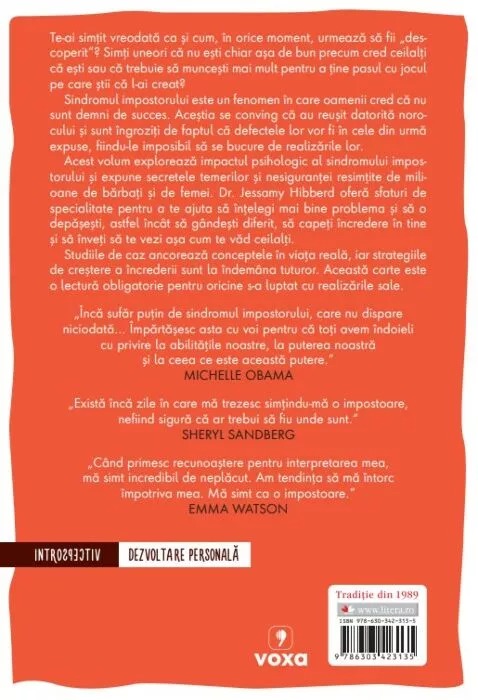 Acest volum explorează impactul psihologic al sindromului impostorului și expune secretele temerilor și nesiguranței resimțite de milioane de bărbați și de femei.
