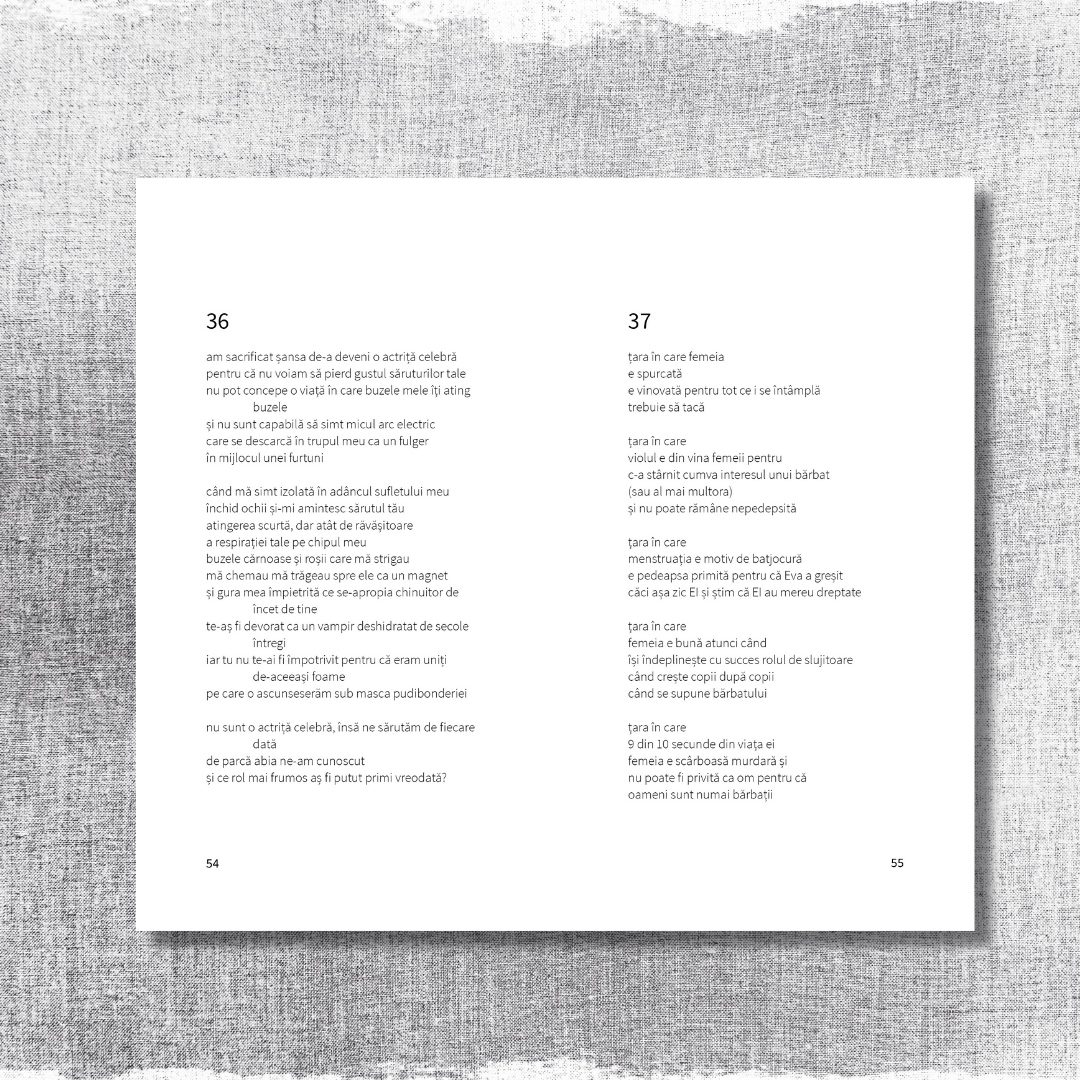 Cartea e viscerală și descrie momente de agresiune internă sau externă, punctând condiția femeii în patriarhat și redefinind arta într-un fel neașteptat. Versurile sunt crude, realiste și construiesc, împreună, o adevărată critică socială și chiar personală. Acest volum nu e pentru oricine!
